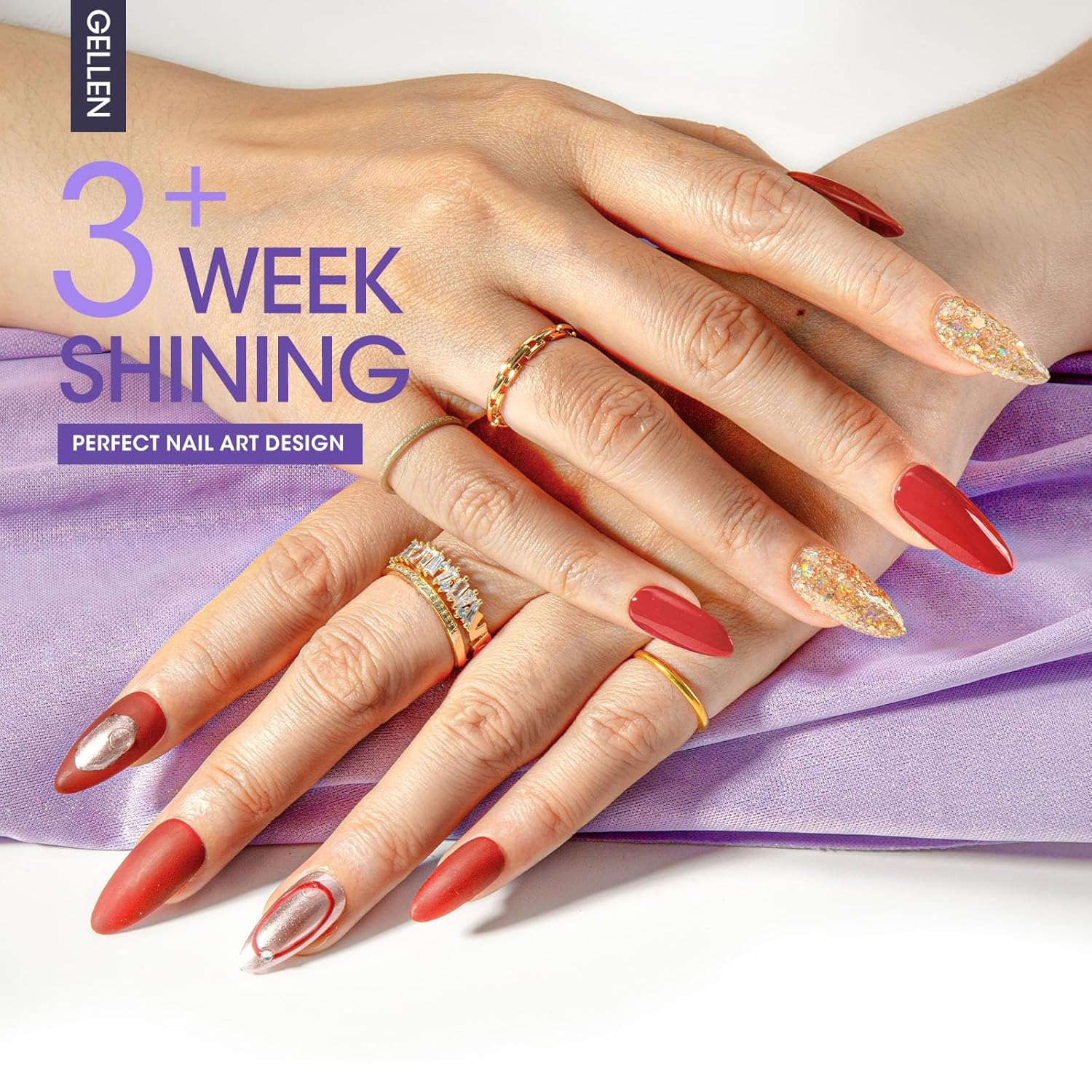 • 18 ml Large Capacity: Gellen gel top coat set contains 1*18 ml base coat, 1*18 ml glossy top coat, 1*18 ml nail strengthener gel. This set can harden your weak thin nails, adding extra thickness and strength to your gel manicure