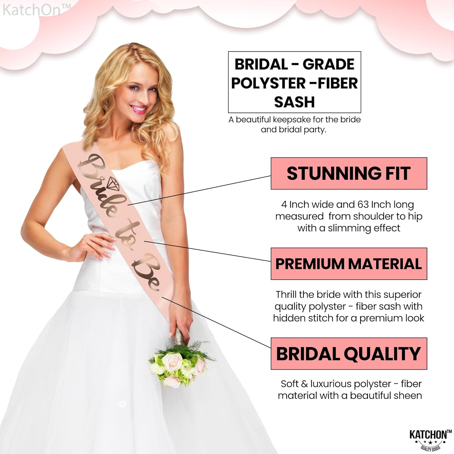 KatchOn, Rose Gold Bride to be Sash and Headband - Pack of 2 | Bride Sash and Tiara for Bachelorette Party Decorations | bride To Be sash and Crown | Bridal Shower Decorations