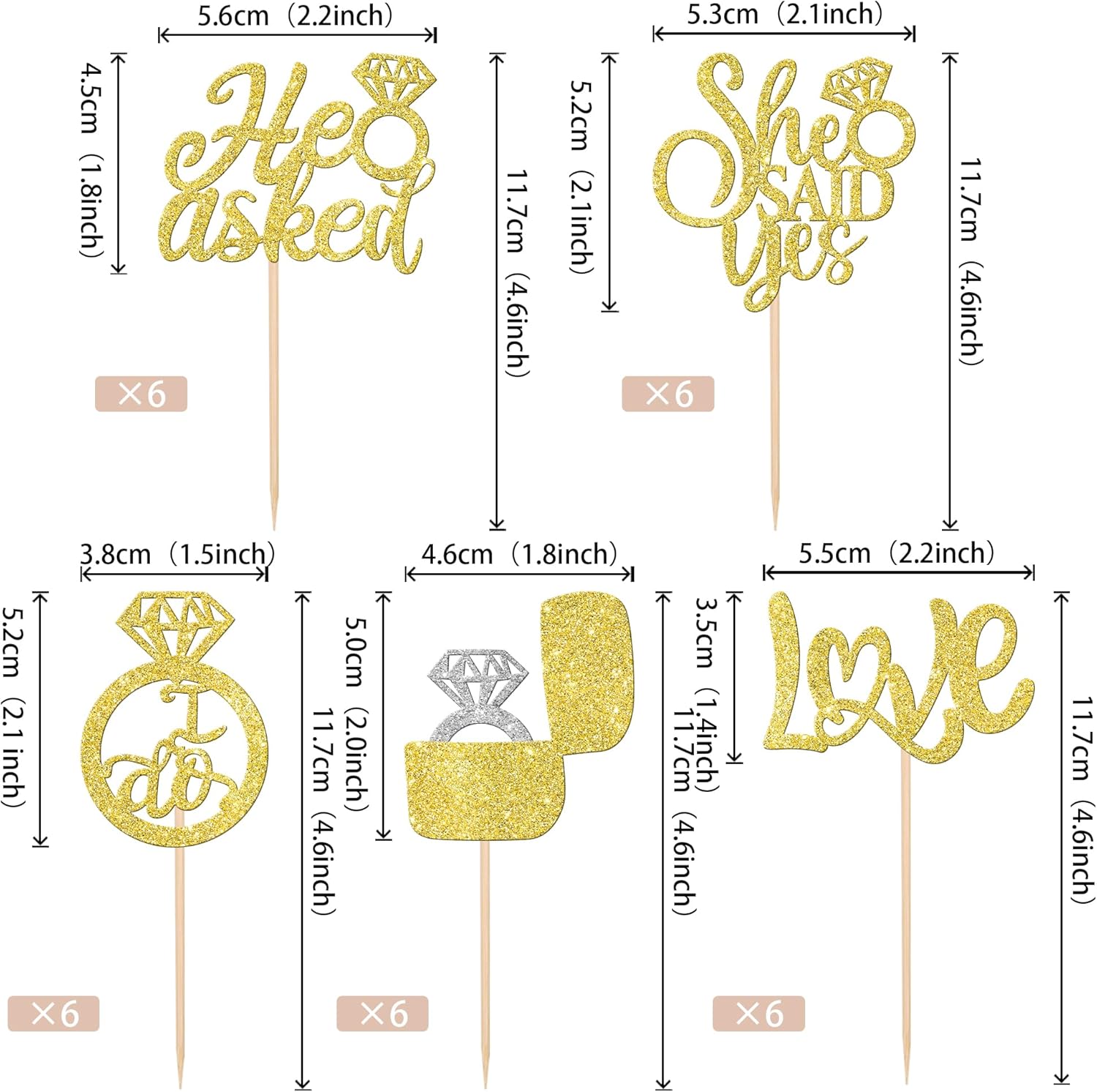 • Wide Usages ! These cupcake toppers are perfect for wedding engagement theme party, bridal shower theme party, he asked she said yes theme party cupcake decorations , they can make your cupcake more attractive and bring the fun to your party.You can also apply them for ice cream, fruits, cookies and other desserts.