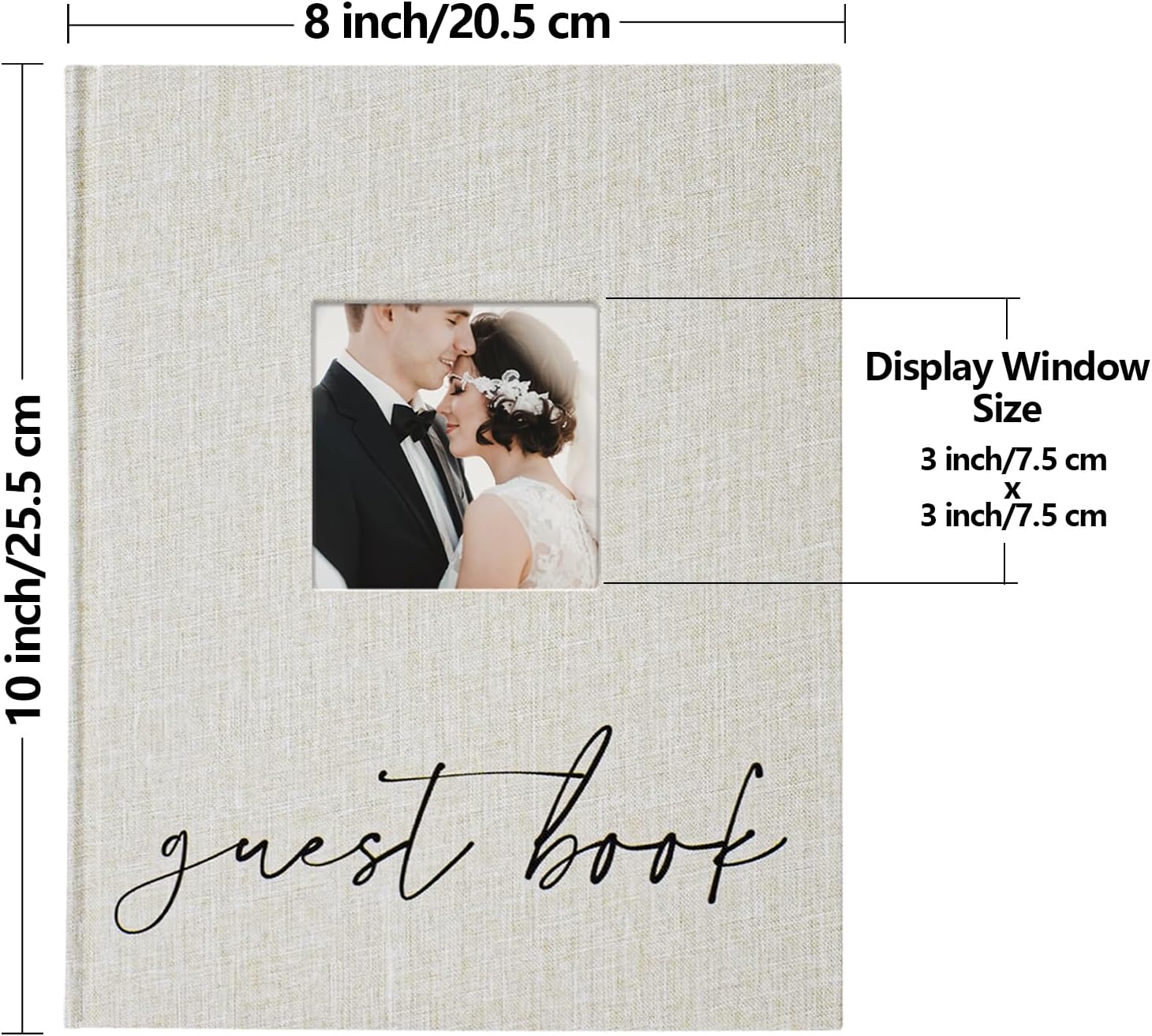 • Personalized Guest Book: The cover of the wedding guestbook is wrapped in linen, durable and sturdy, highlighting its elegance and sophistication. The cover comes with a 3x3 inch window where you can change your favorite photos to create a guestbook with your own unique style!