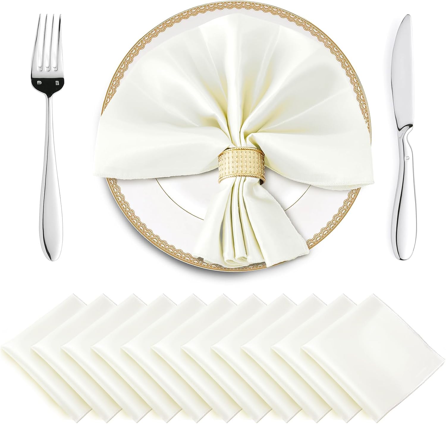 Horbaunal 16 Pack Ivory Satin Napkins 17 x 17 Inch, Square Silky Cloth Napkins, Soft Table Napkins for Weddings Banquets Parties