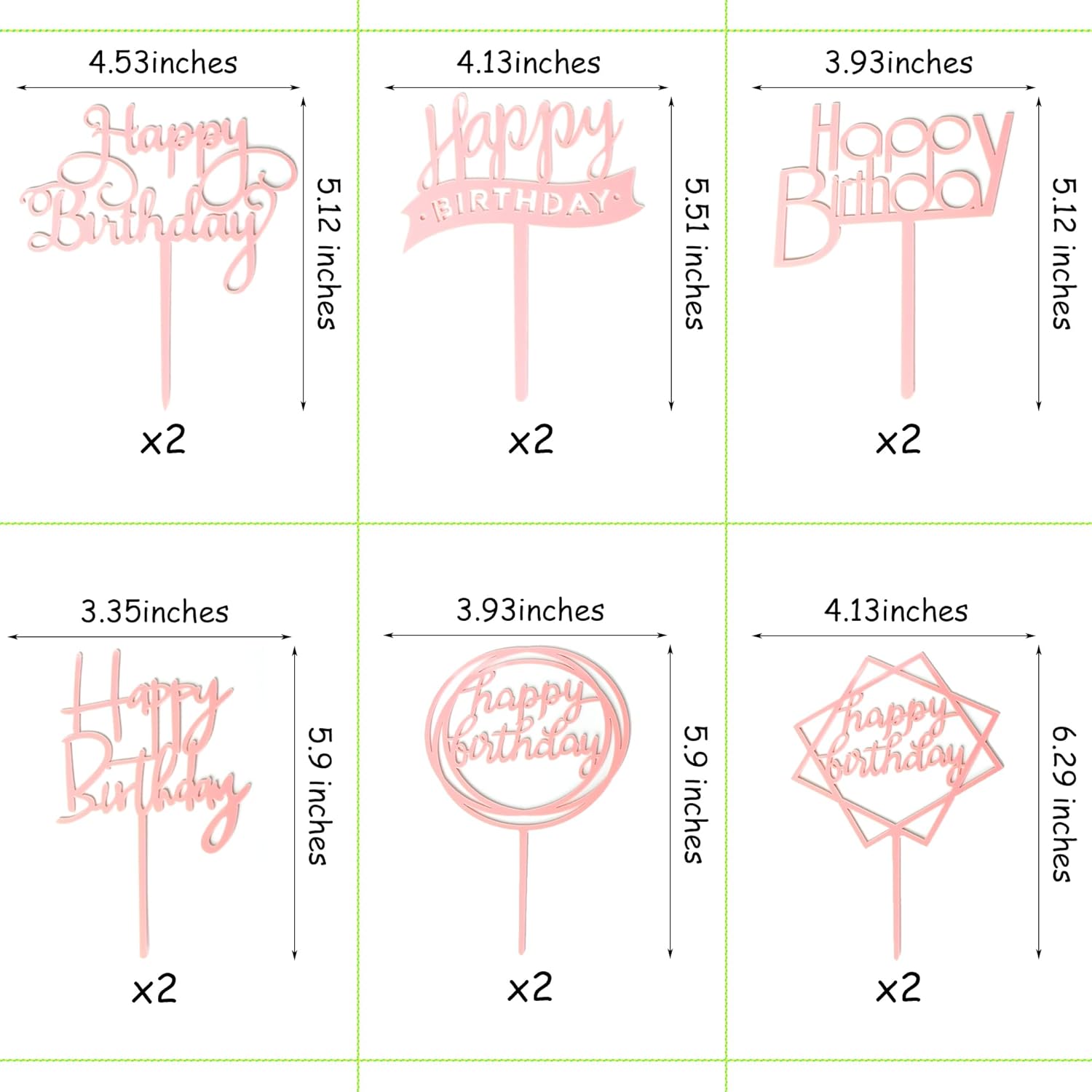 • Size: The Happy birthday cake toppers’ height is approx.5.1 - 6.3 inches, the width is approx. 3.4 - 4.5 inches. Ideal for 6-10” cakes.