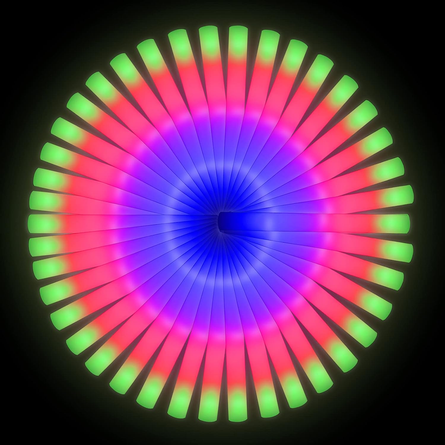 • 192pcs Glow Foam Sticks with 3 Flashing Modes: Press power button to switch between 3 different light up modes Quick flashing, Slow flashing, Alternately flashing in green red blue 3 light color