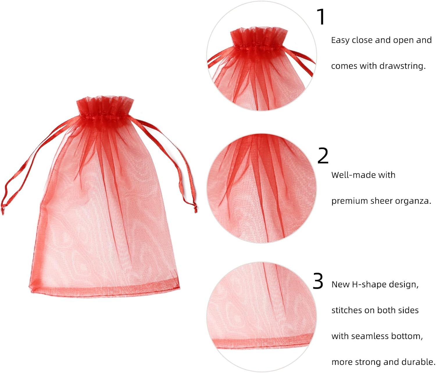 Wudygirl 100PCS Organza Bags 5X7 Inch Favor Bags Jewelry Bags Drawstring for Christmas Candy Wedding Favor Party Baby Shower(Red 5X7)