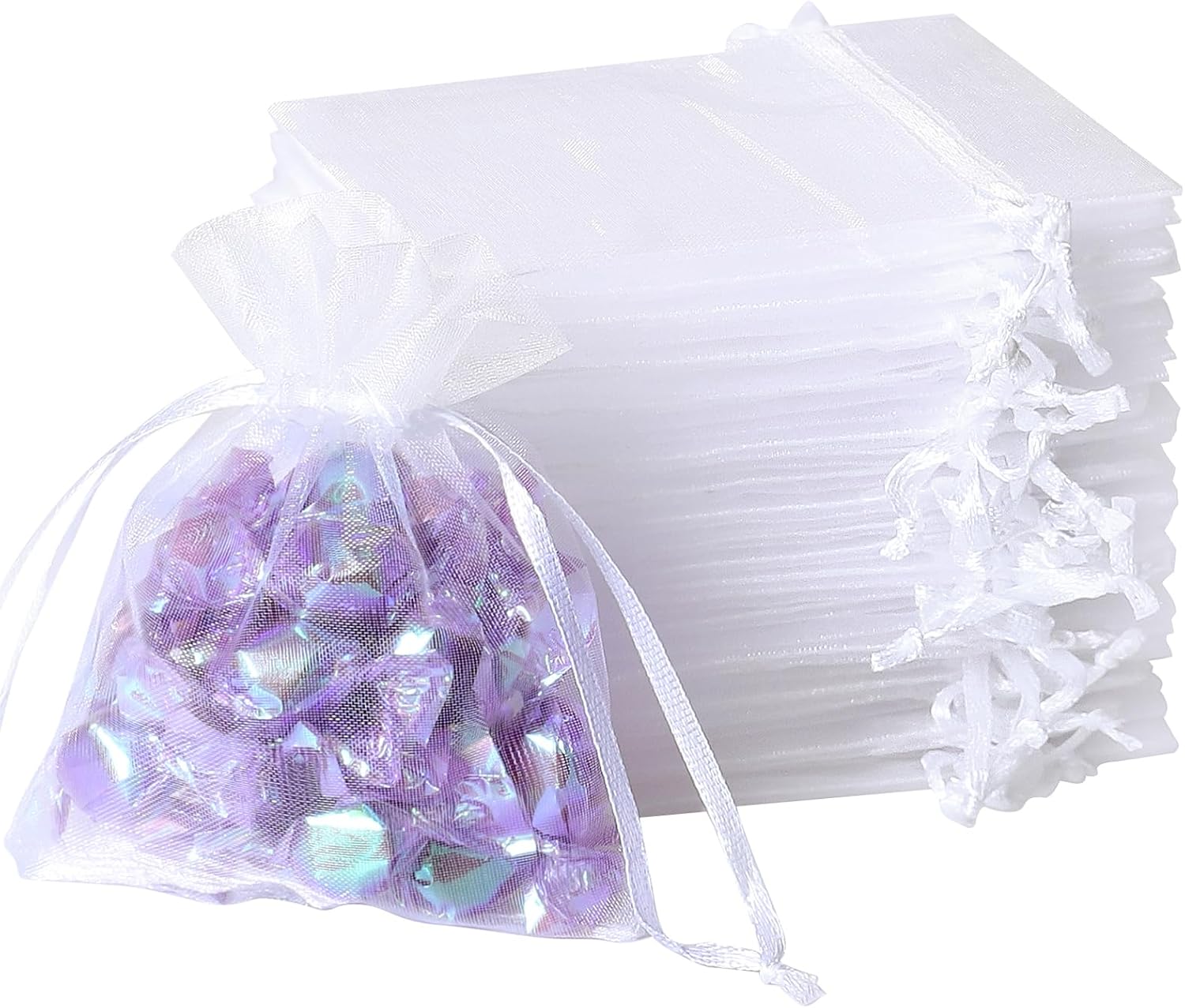 • 1. Exquisite and Practical: This set of white Organza Bags includes 100 pieces, each measuring 2x3 inches. Their delicate appearance makes them an ideal choice for packaging small gifts, jewelry, and candies, suitable for various occasions including weddings, parties, and Christmas.