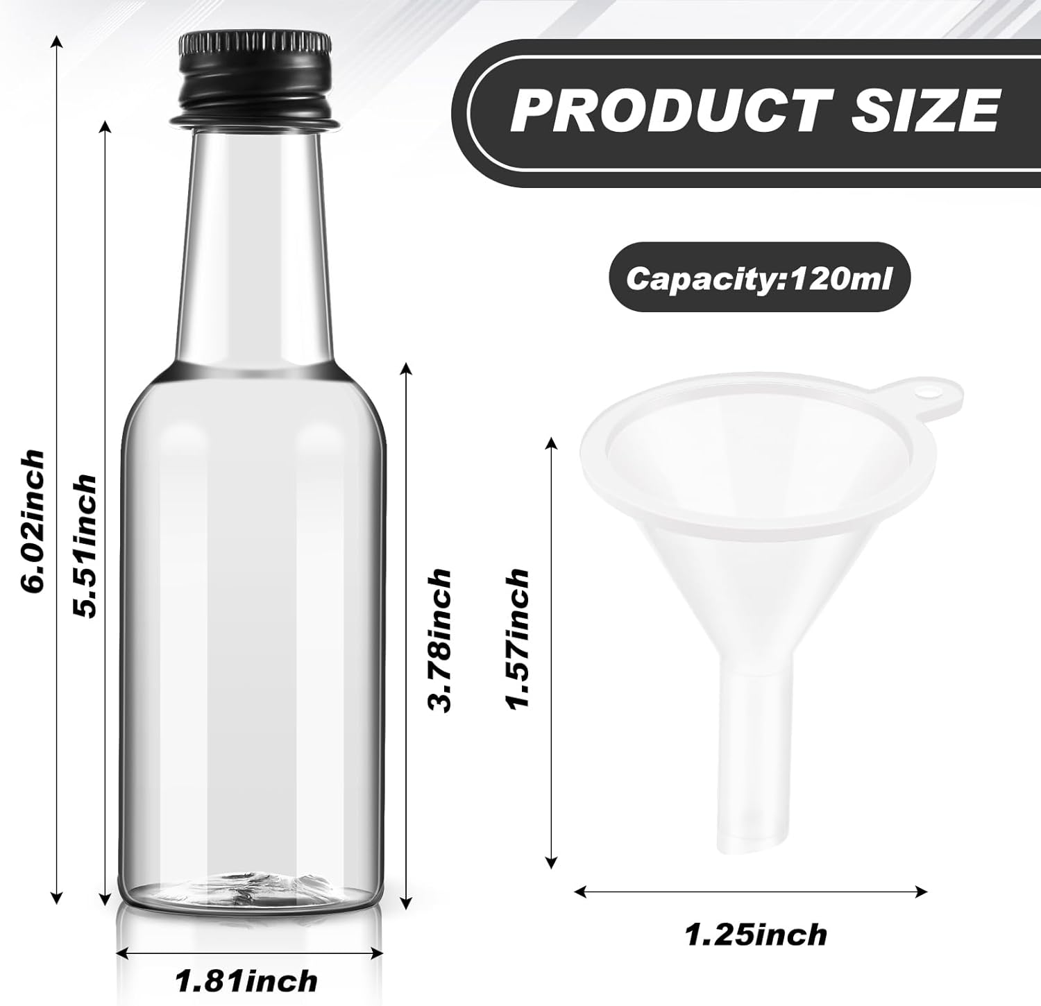 • Satisfy Your Use Demands: you will get 100 pieces of mini liquor bottles and 4 pieces of liquid funnels, a large amount that can meet your various use needs and replacement requirements easily, also nice for sharing with others