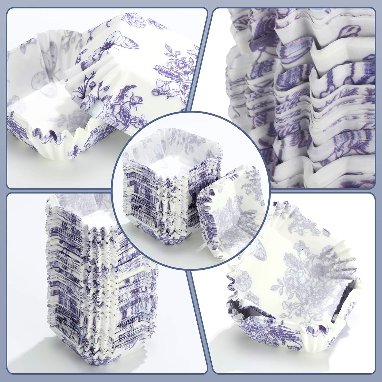 • Enough to Use: you will receive a total of 350 pieces of square cupcake liners in blue and white color and printed with flower and butterfly, offering sufficient quantity to satisfy your baking use and replacement demands, you can also share with others to make their cupcakes more eye catching