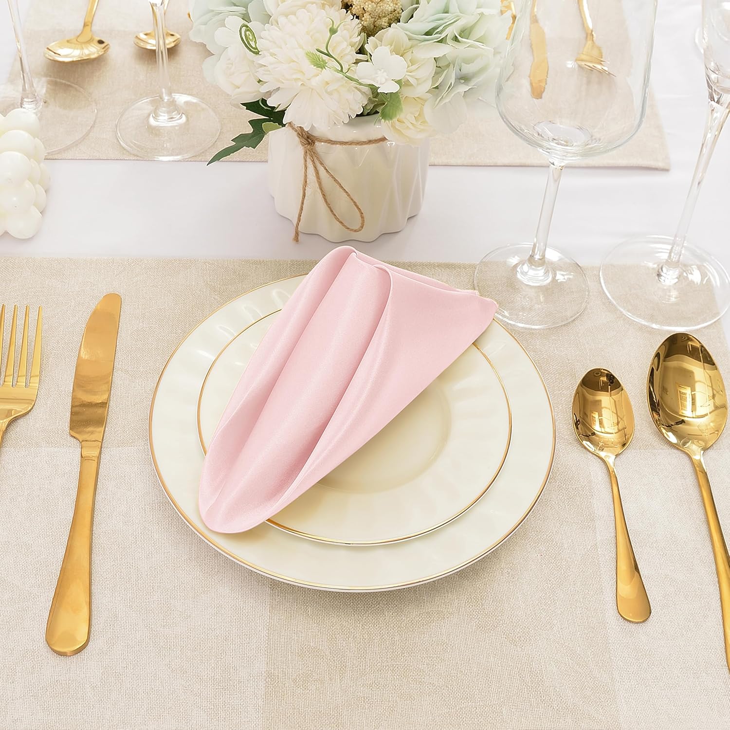 50 Pieces Light Pink Satin Napkins, 17" x 17" Square Table Napkins, Silky Soft Smooth Washable Napkins for Restaurant, Weddings, Dinner, Party Decoration