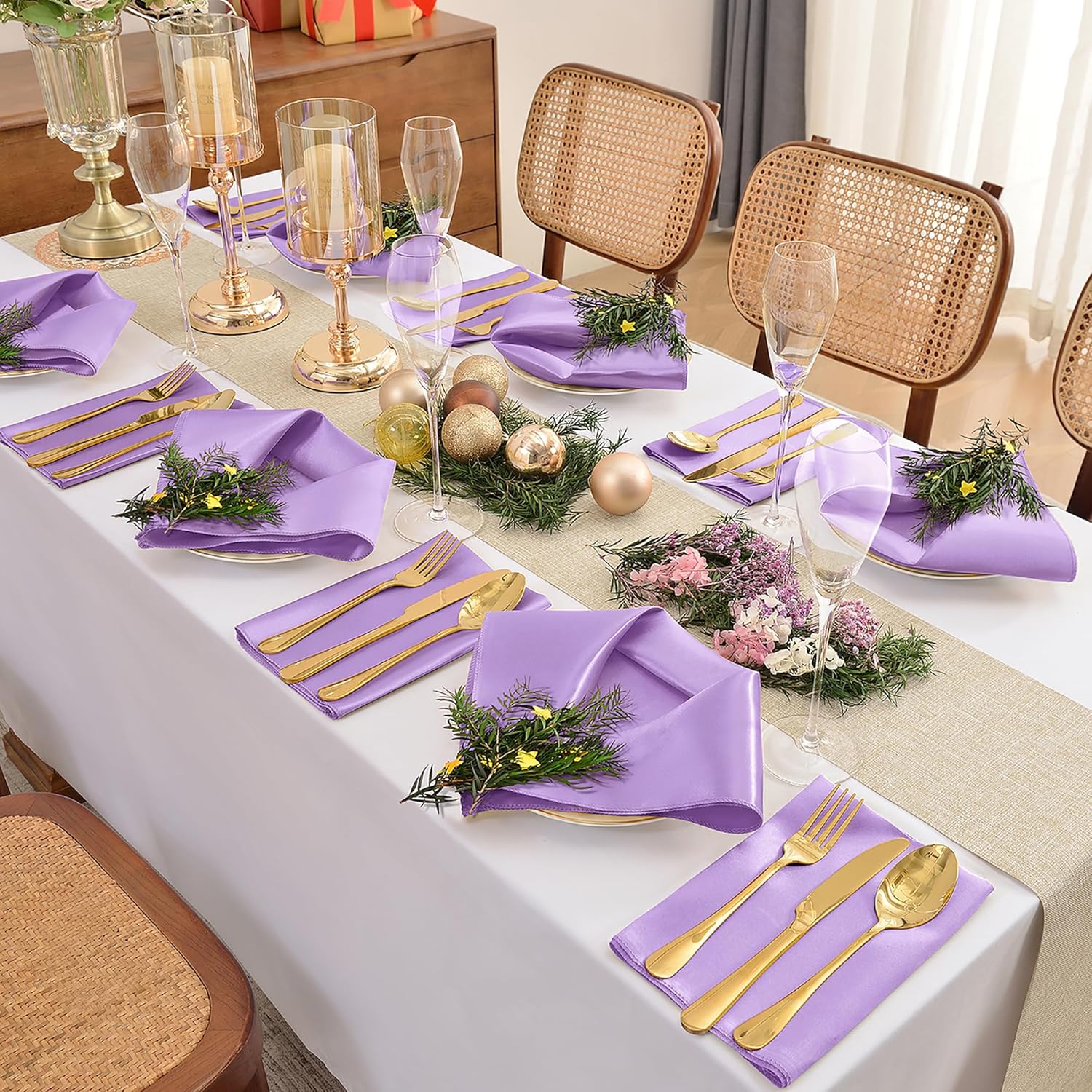 50 Pieces Lavender Satin Napkins, 17" x 17" Square Table Napkins, Silky Soft Smooth Washable Napkins for Restaurant, Weddings, Dinner, Party Decoration
