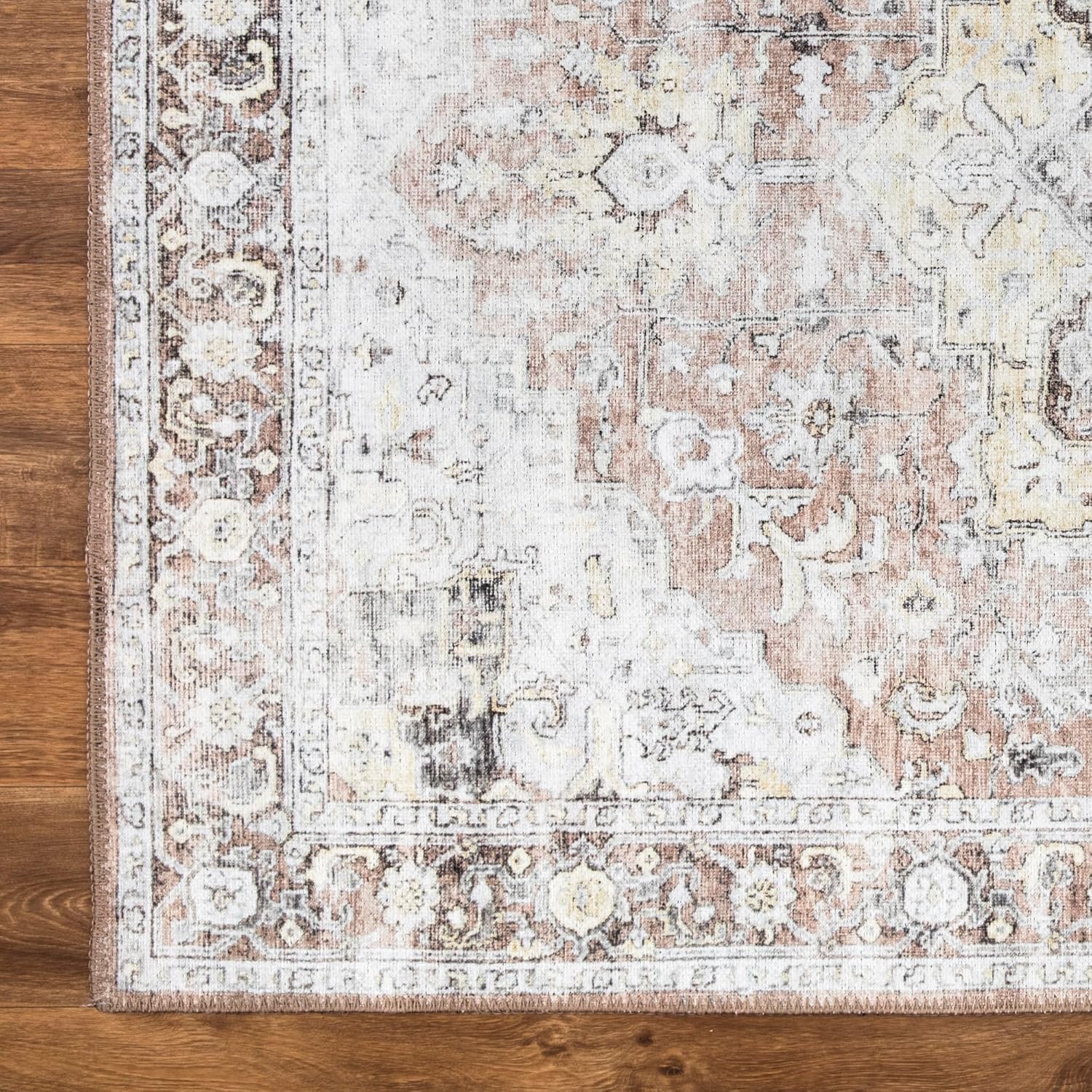 Bloom Rugs Washable Non-Slip 5' x 7' Rug - Blush/Beige Traditional Medallion Area Rug for Living Room, Bedroom, Dining Room, and Kitchen - Exact Size: 5' x 7'