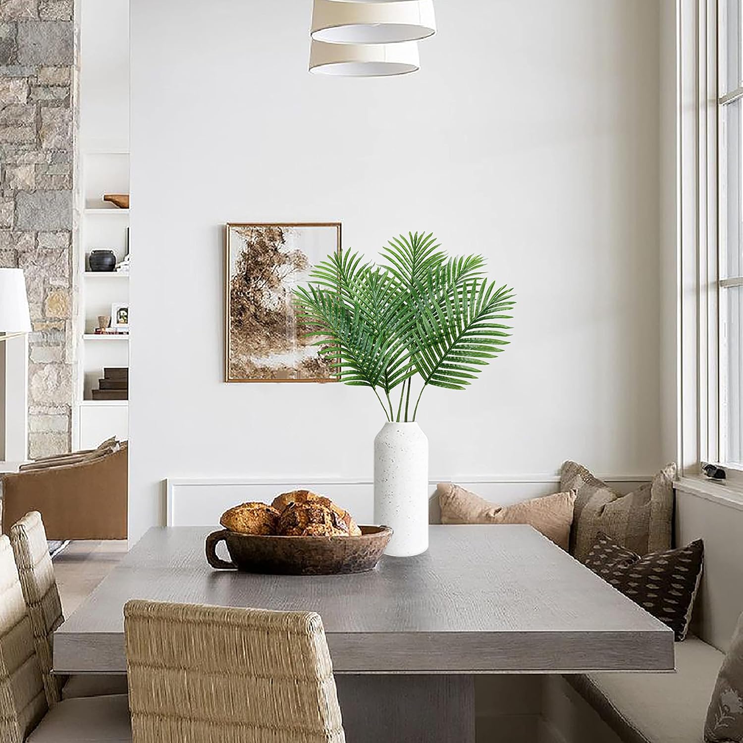 • Premium Material- Artificial palm leaf made of durable fabric, the surface of the leaves is glossy and the veins are clearly printed, Bendable palm stem to fit your vase or adjust the shape make it looks more real.
