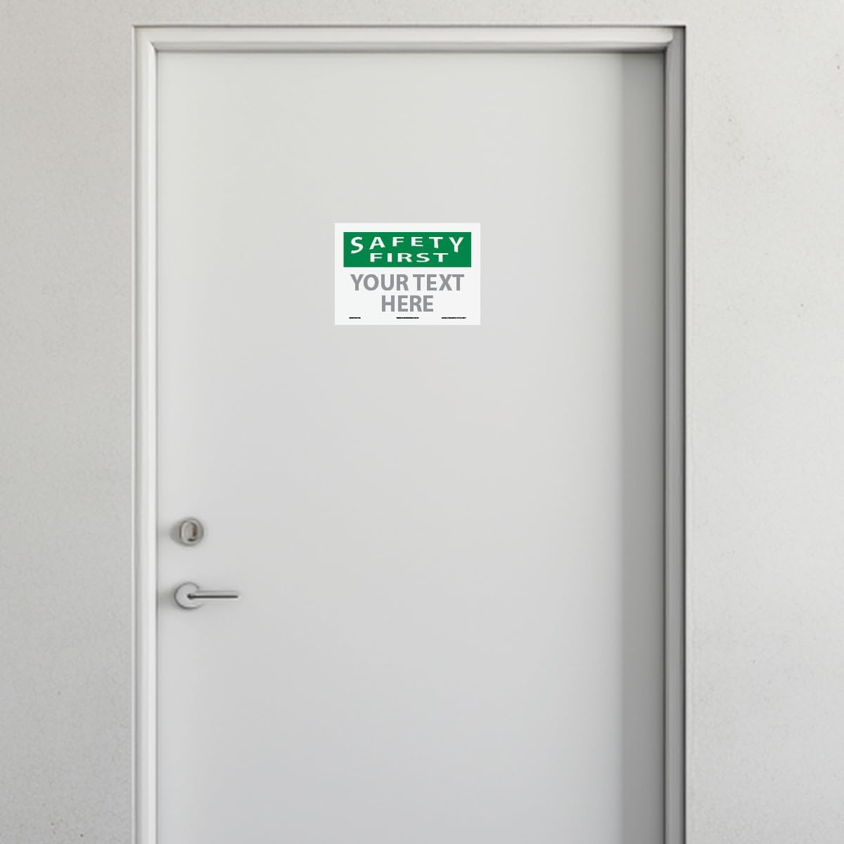 Custom OSHA Style Safety First Sign 7" x 10" Adhesive Vinyl Sign, Customizable "Your Text Here", by AccuformNMC Made in USA