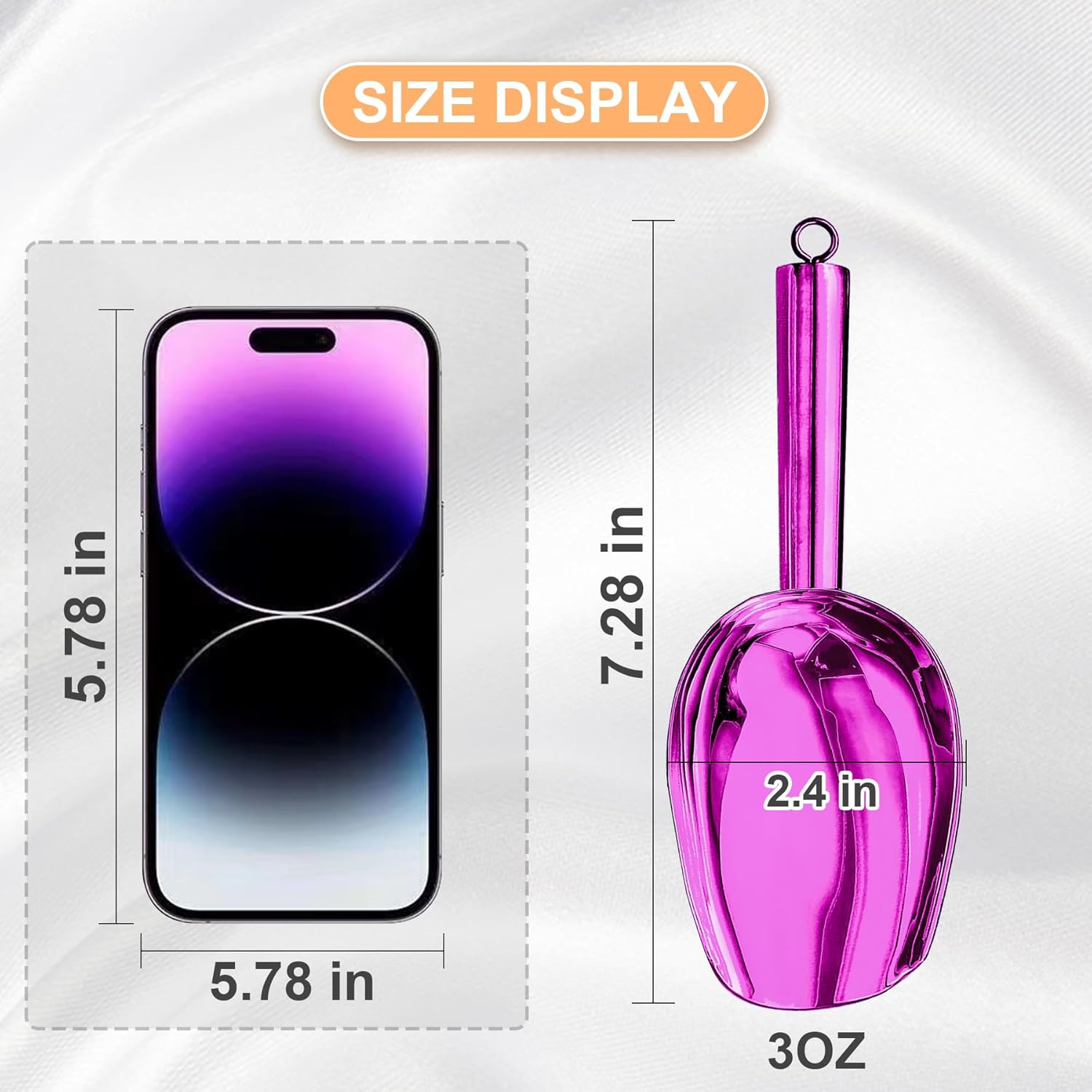 Metal Ice Scoop 3 Oz, Small Stainless Steel Ice scooper for Ice Maker Ice Bucket Kitchen Freezer Bar Party Wedding, Multipurpose for Coffee Bean,Flour Scoop,Dog Food Scoop (3 OZ-purple)