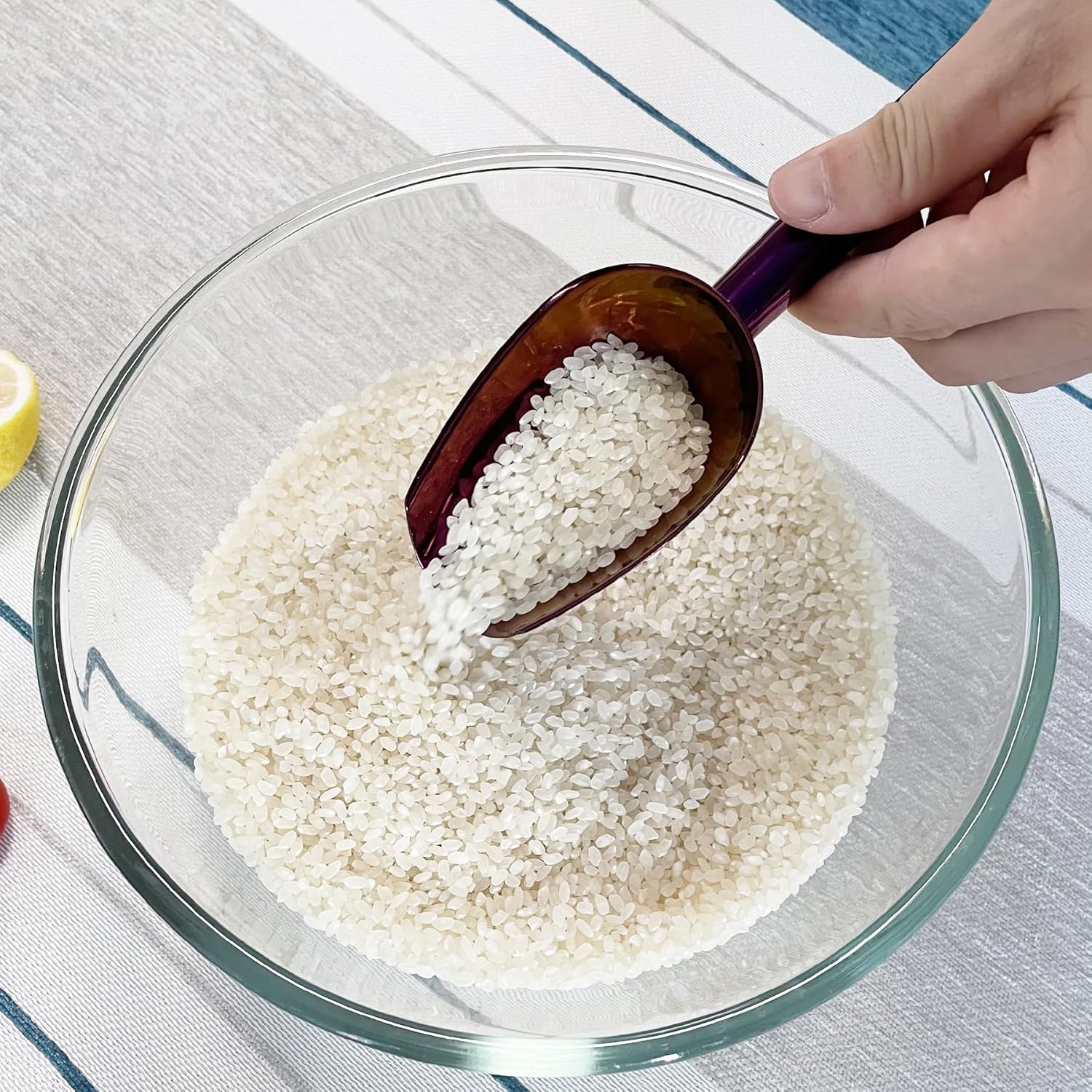 • 【Design Feature】: Rounded Edges Design,no sharp edges, the edges of scooper won't hurt your hands, the handle is solid for a better grip,and the hook on top allows for hanging storage