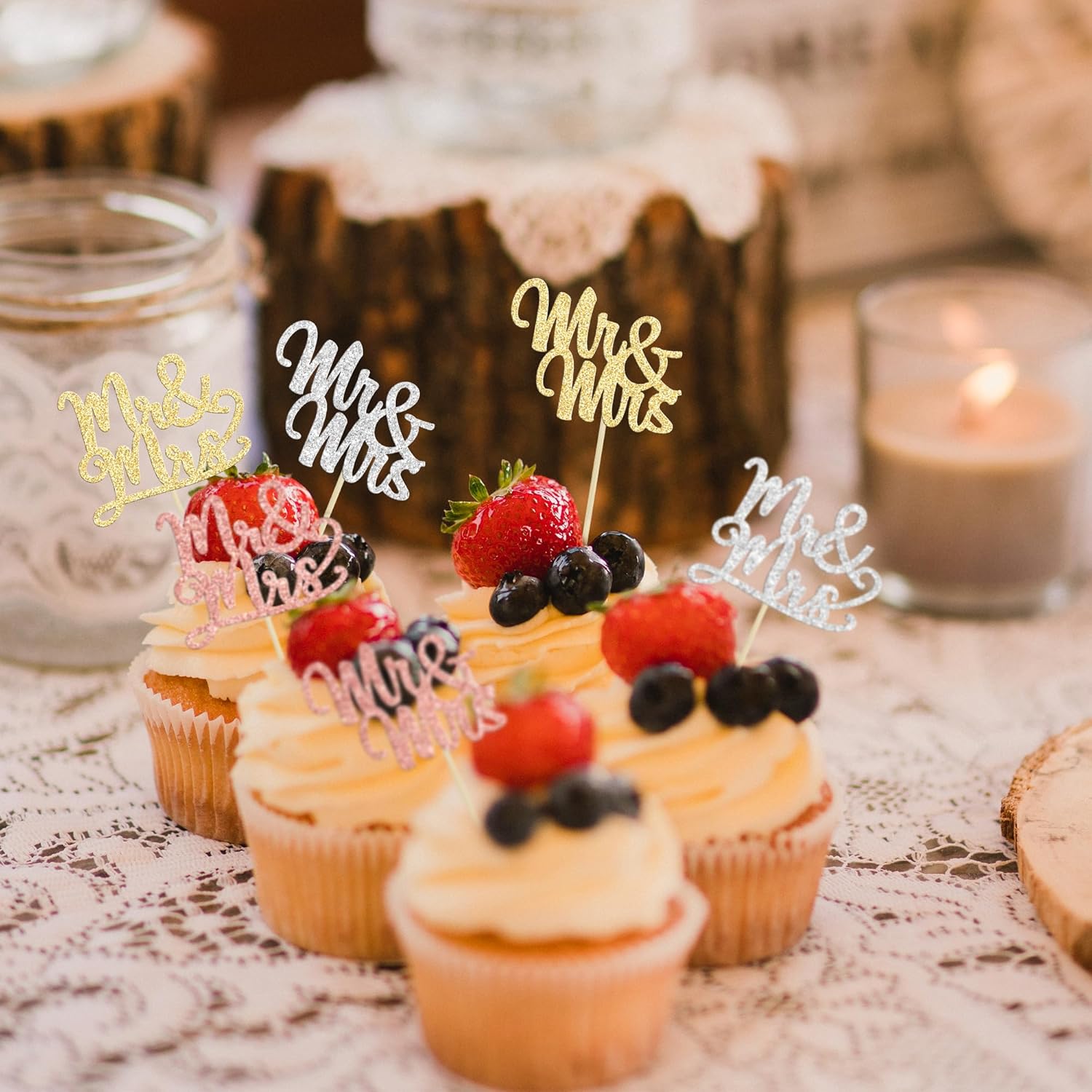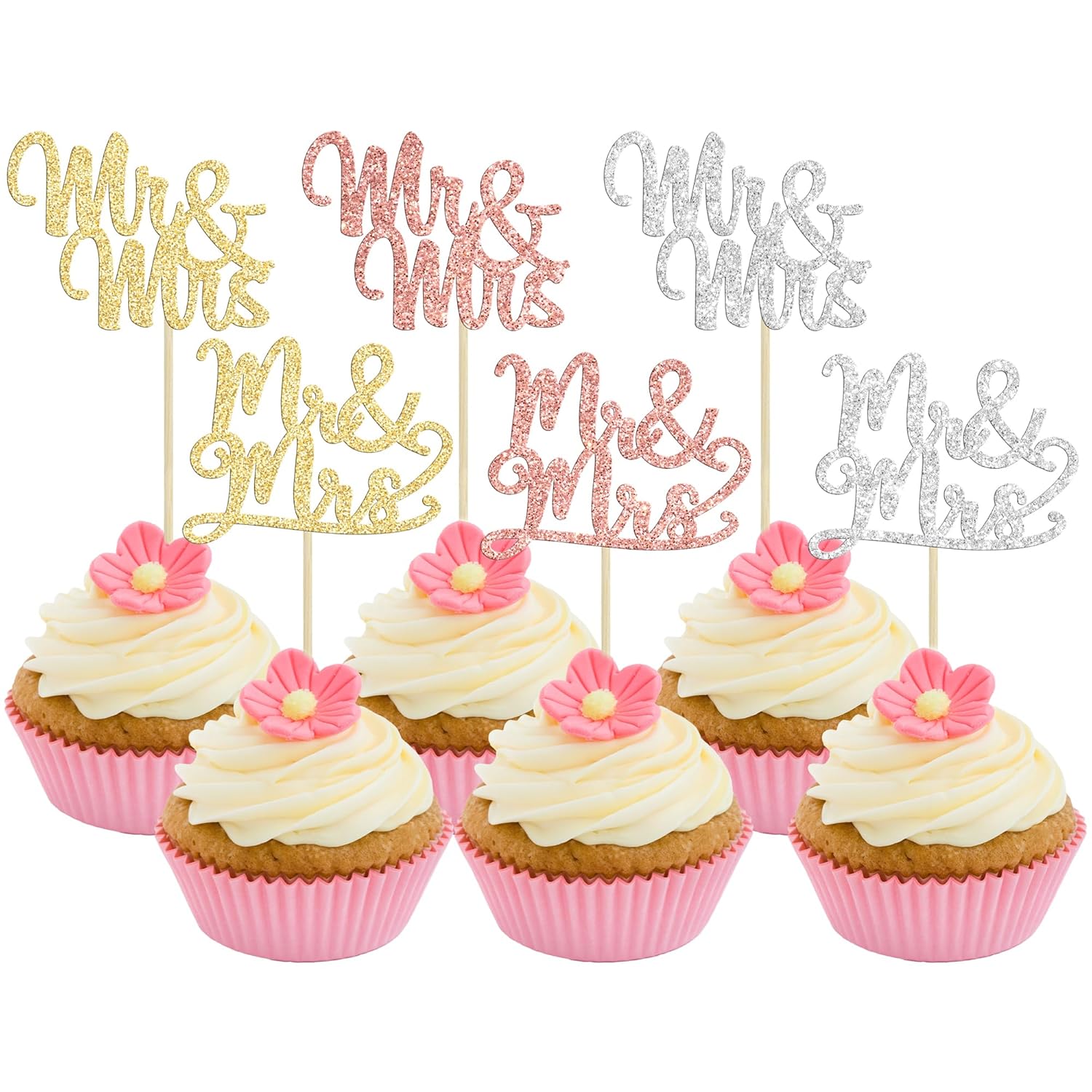 Gyufise 36Pcs Mr & Mrs Cupcake Toppers Glitter Bridal Shower Cupcake Picks for Wedding Engagement Birthday Anniversary Party Cake Decorations Supplies Colorful