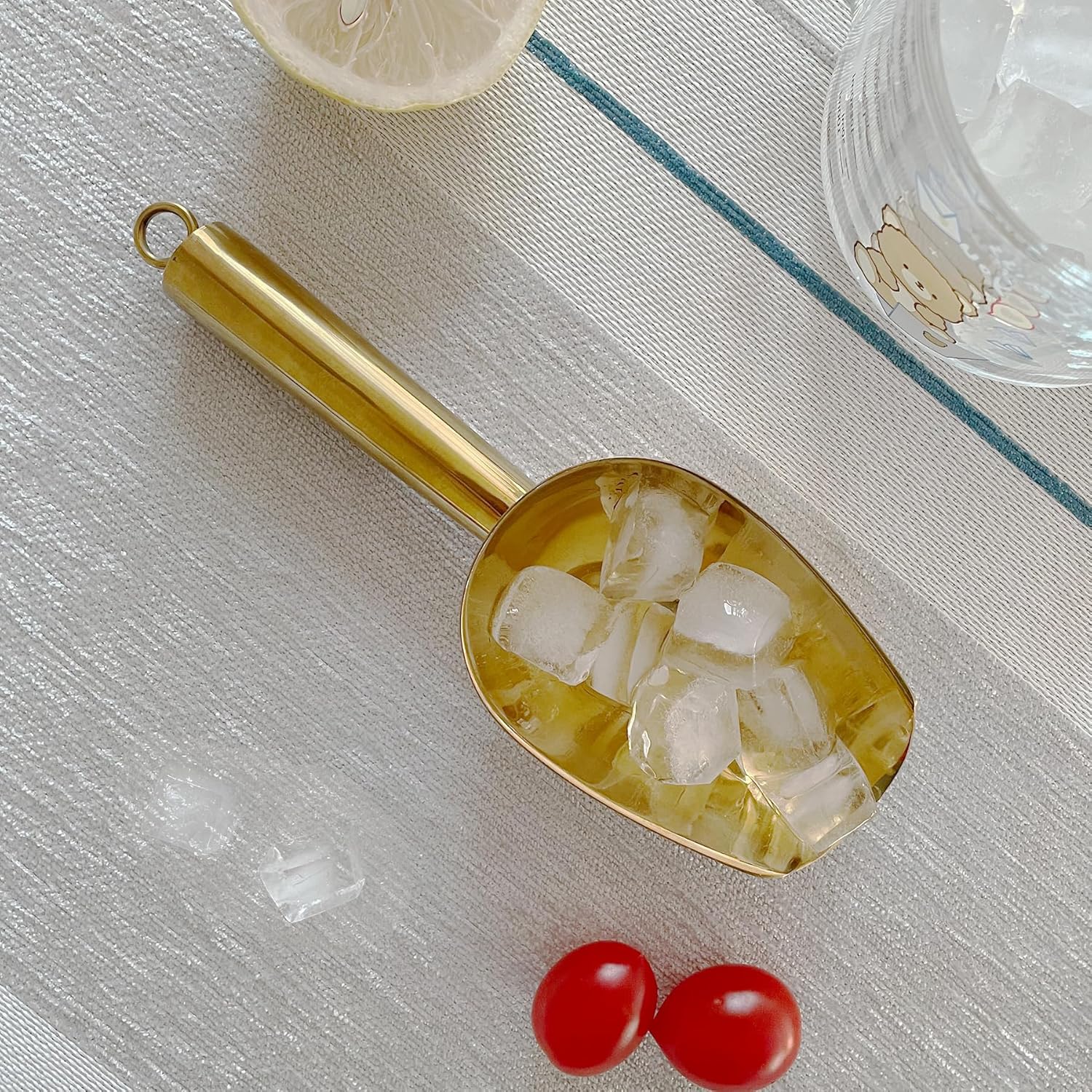 Metal Ice Scoop 3 Oz, Small Stainless Steel Ice scooper for Ice Maker Ice Bucket Kitchen Freezer Bar Party Wedding, Multipurpose for Coffee Bean,Flour Scoop,Dog Food Scoop (3 OZ-Gold)