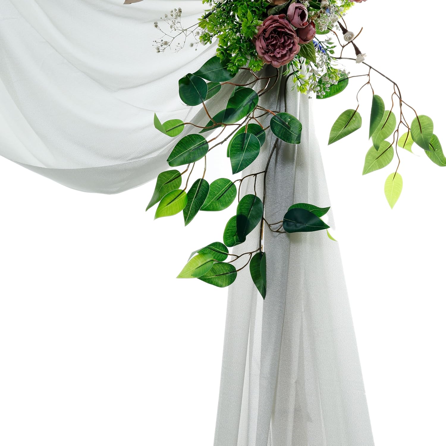 • 🎁 SIZE: 30 Inch Wide X 30 Feet Long - Perfect length for any size Arch (Round or Rectangle) for a elegant puddle drop. Long enough for any size of arch, canopy, chuppah, arbor or altars. Just wrap it anyway around the stands.