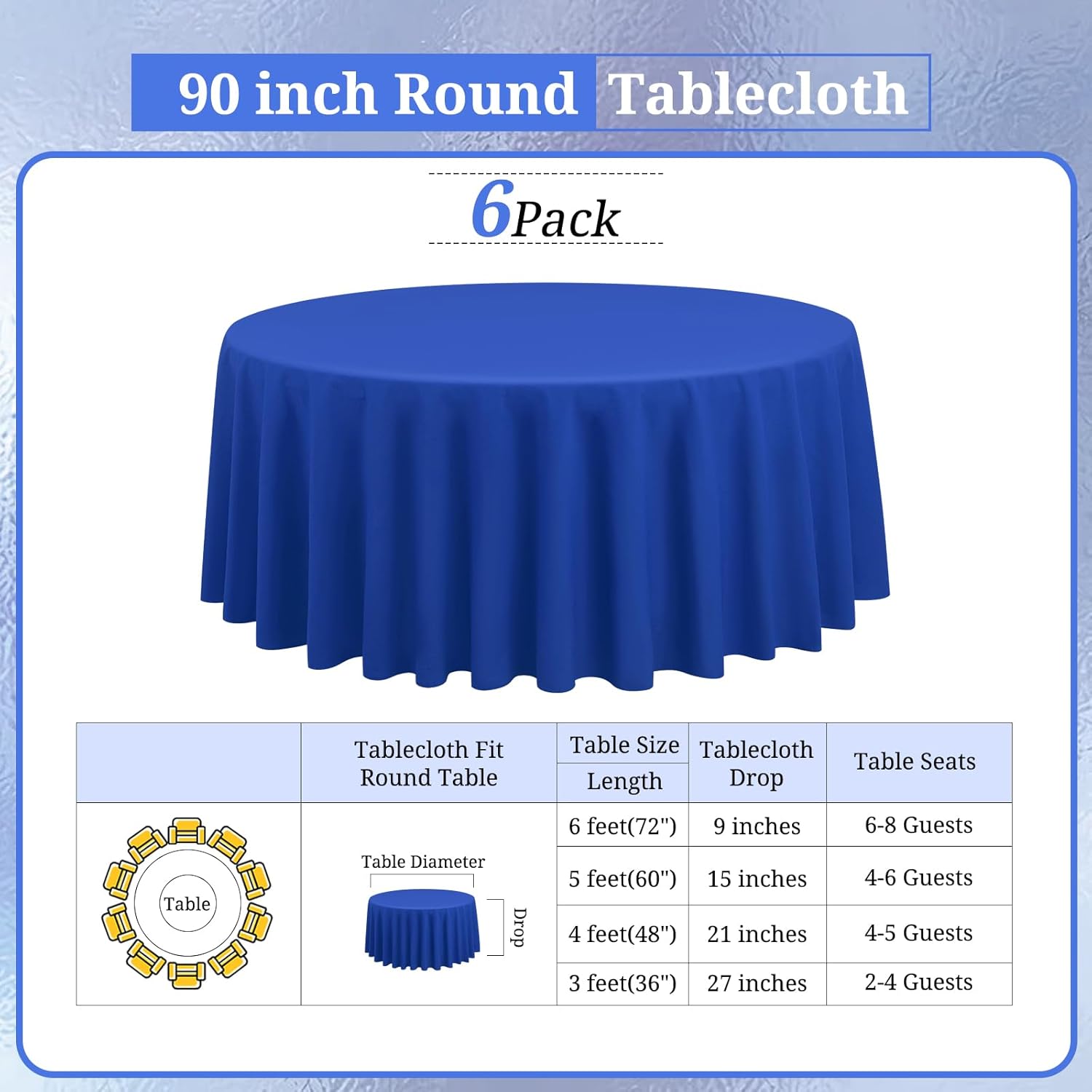6 Pack Round Tablecloths - 90 Inch, Royal Blue Polyester Table Cover for Round Table, Stain and Wrinkle Resistant Washable Fabric Table Cloth, Polyester Tablecloth for Wedding Banquet Parties