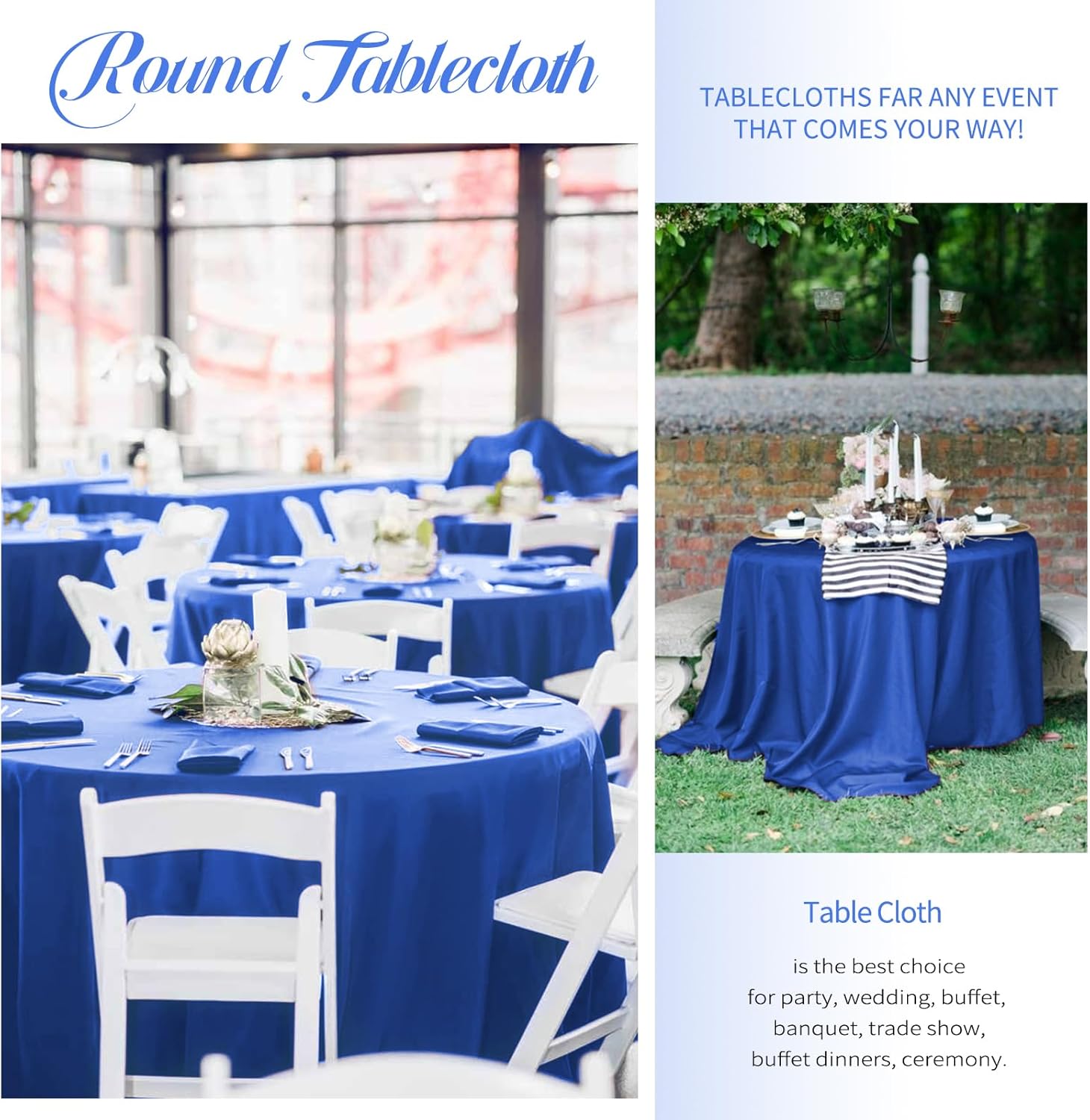 • 【Superior Tablecloth Material】: You will get 6 pack royal blue round tablecloth, this durable and easy to clean tablecloth is made from180 GSM 100% premium polyester fabric that resists wrinkling for an always crisp, polished look. Providing more convenience for your using and cleaning. Durable for repeat use.