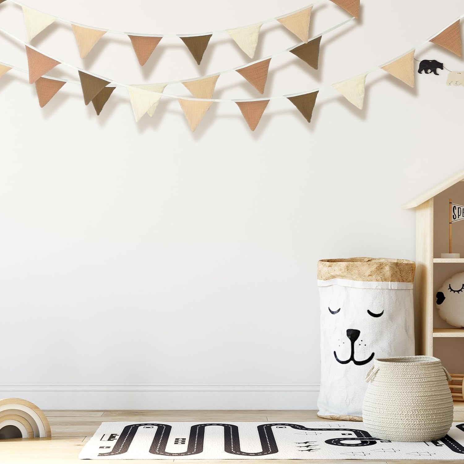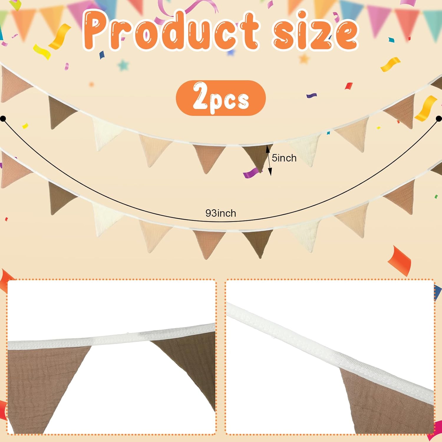 Oudain 15.5 ft Pennant Banner Flags, 2 Pcs Nursery Garland Triangle Bunting Flag Baby Banner for Nursery Decor Baby Birthday Boho Wedding Shower Party Event, Each 7.75 ft(Khaki Colors)