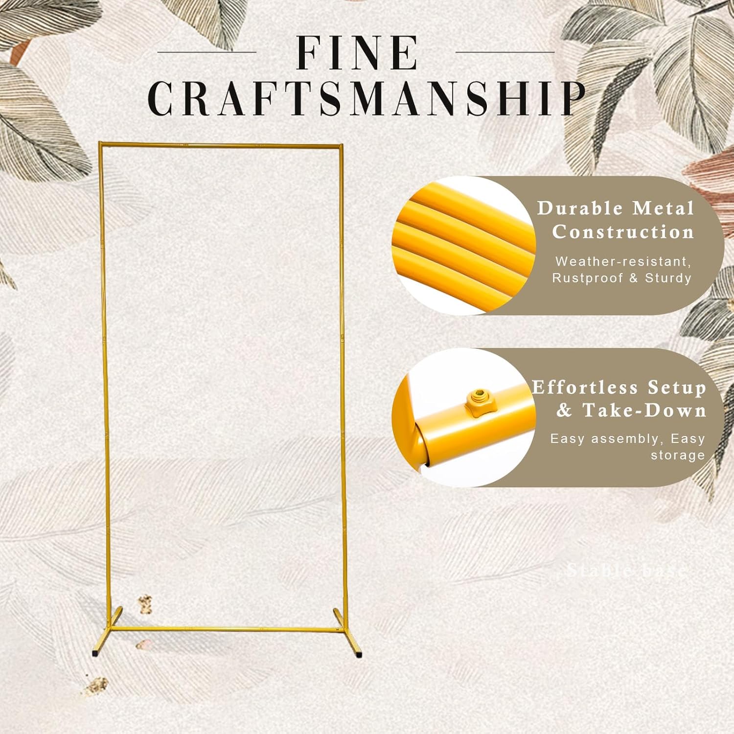 Wedding Square Balloon Arch Stand, Gold Backdrop Stand 6.6 x 3.3 FT Metal Party Frame for Wedding Ceremony Bridal Archway Birthday Party Decoration Harfirbe