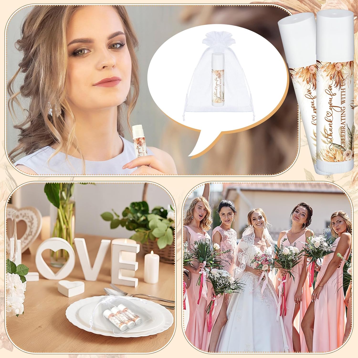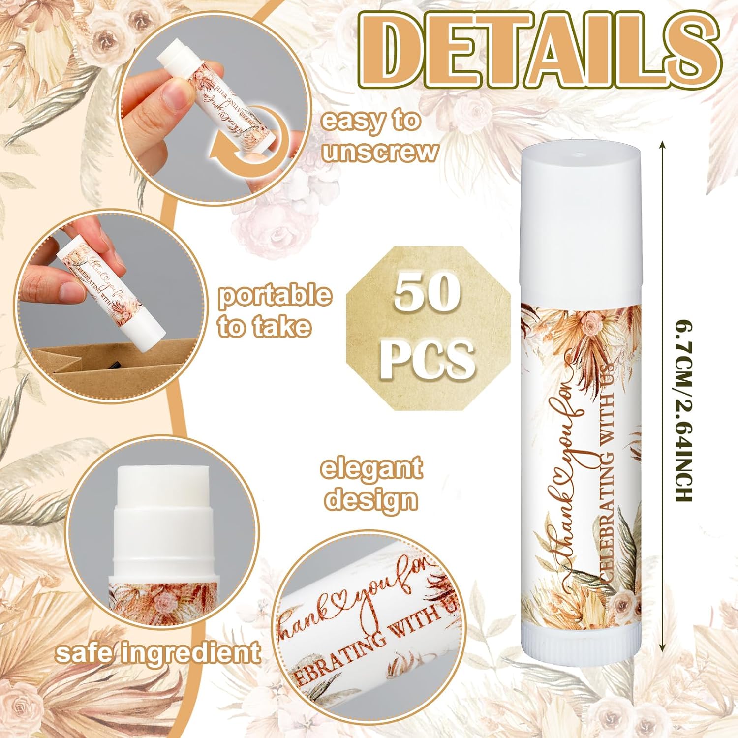 • Lip Balm Favors: you will get 50 pieces of wedding lip balms printed beautiful floral and thankful phrases, cute small wedding souvenirs which smell good and guests will enjoy them