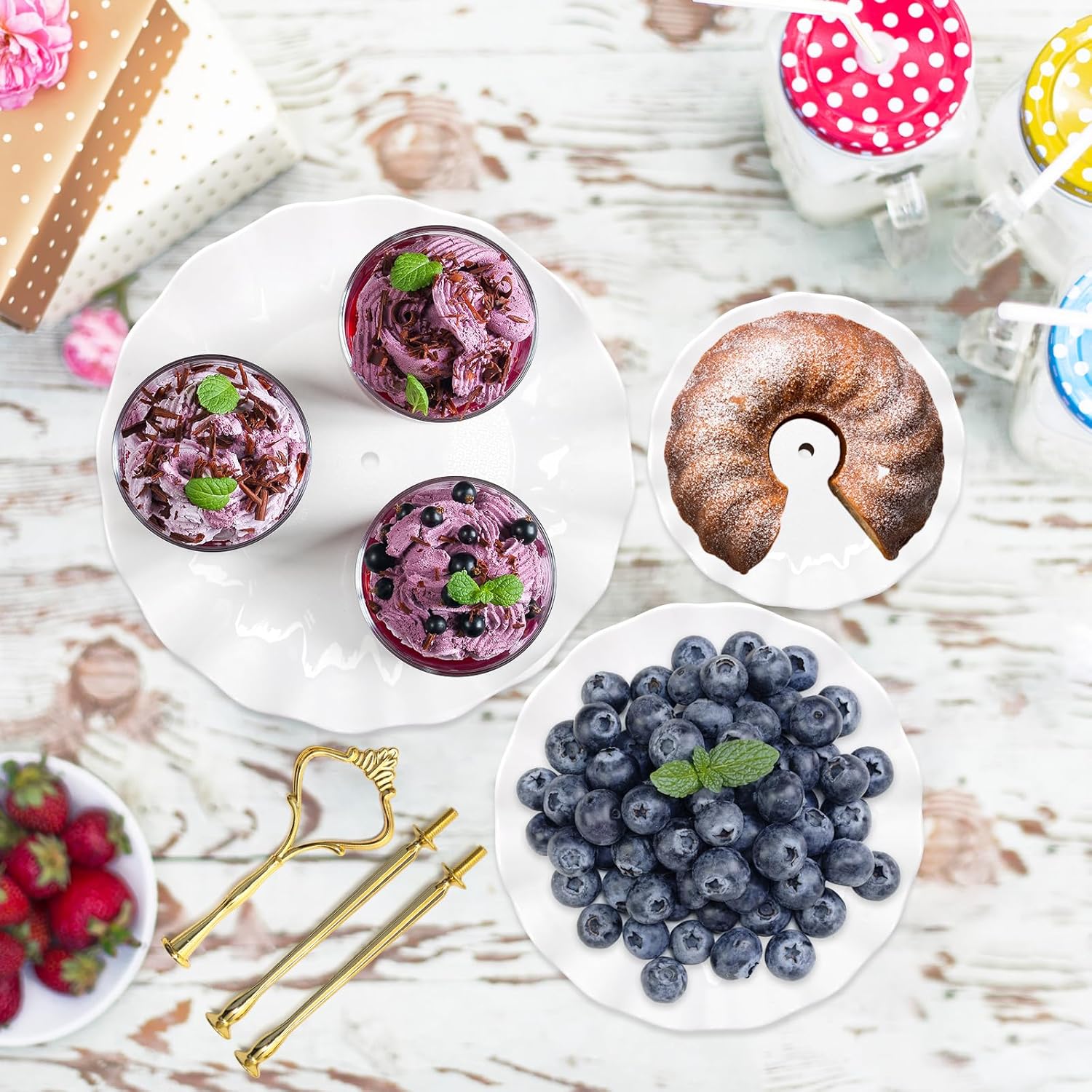• Food Grade Material: 3 tiered serving stand are made of food safety plastic material, stable and lightweight, perfect for displaying cupcakes, appetizers, cookies, brownies and other party treats.