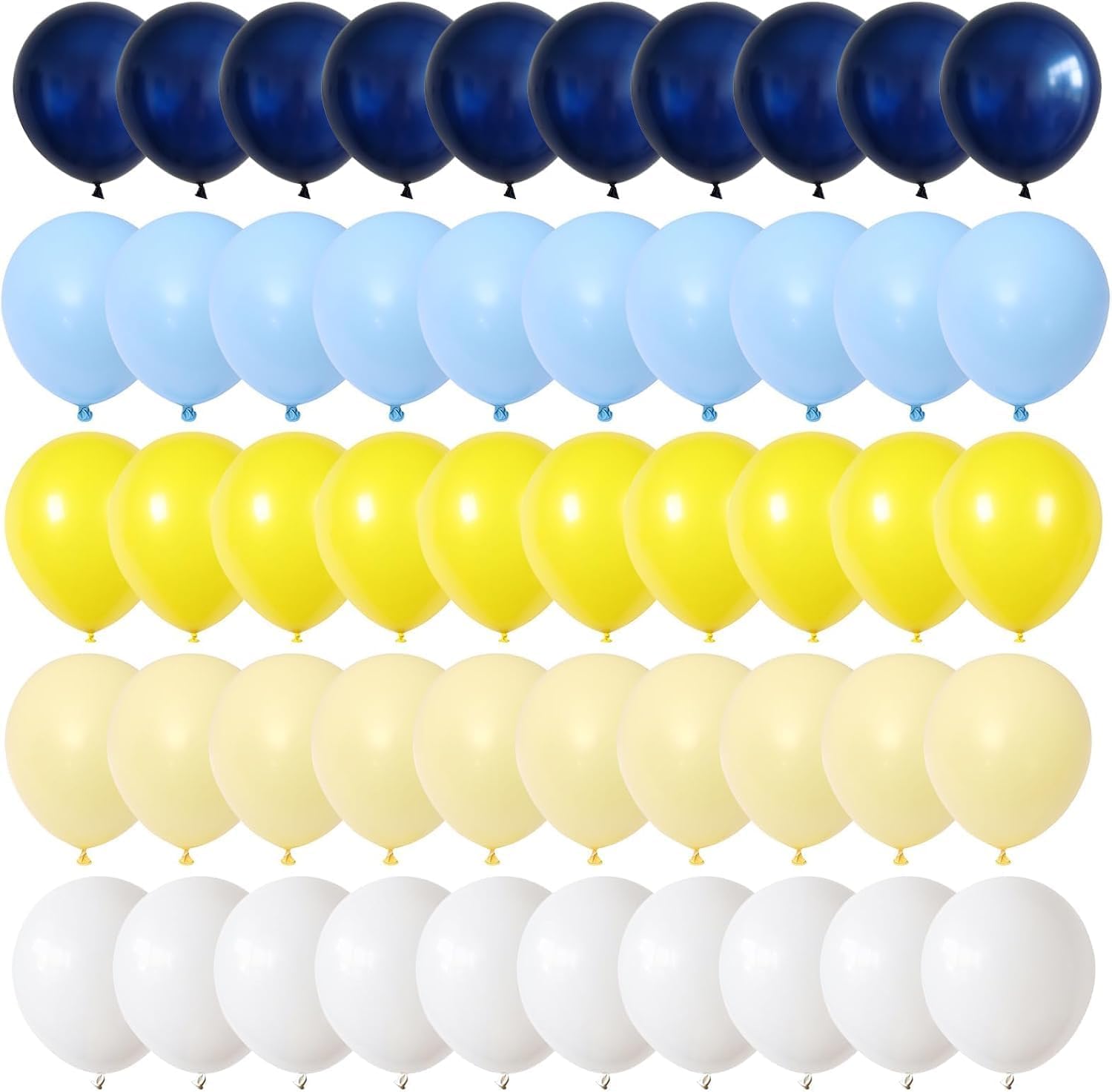 • Blue Yellow White Balloons: You will get 60 pieces 12 inch latex party balloons set, includes navy blue 15pcs, matte yellow 15pcs, pastel blue 10pcs, pastel yellow 10pcs, white 10pcs, come with 1pc white balloon ribbon. The vibrant blue yellow color will stand out and create a stunning visual impact. Perfect for upscale events, weddings, or any occasion where elegance is key.