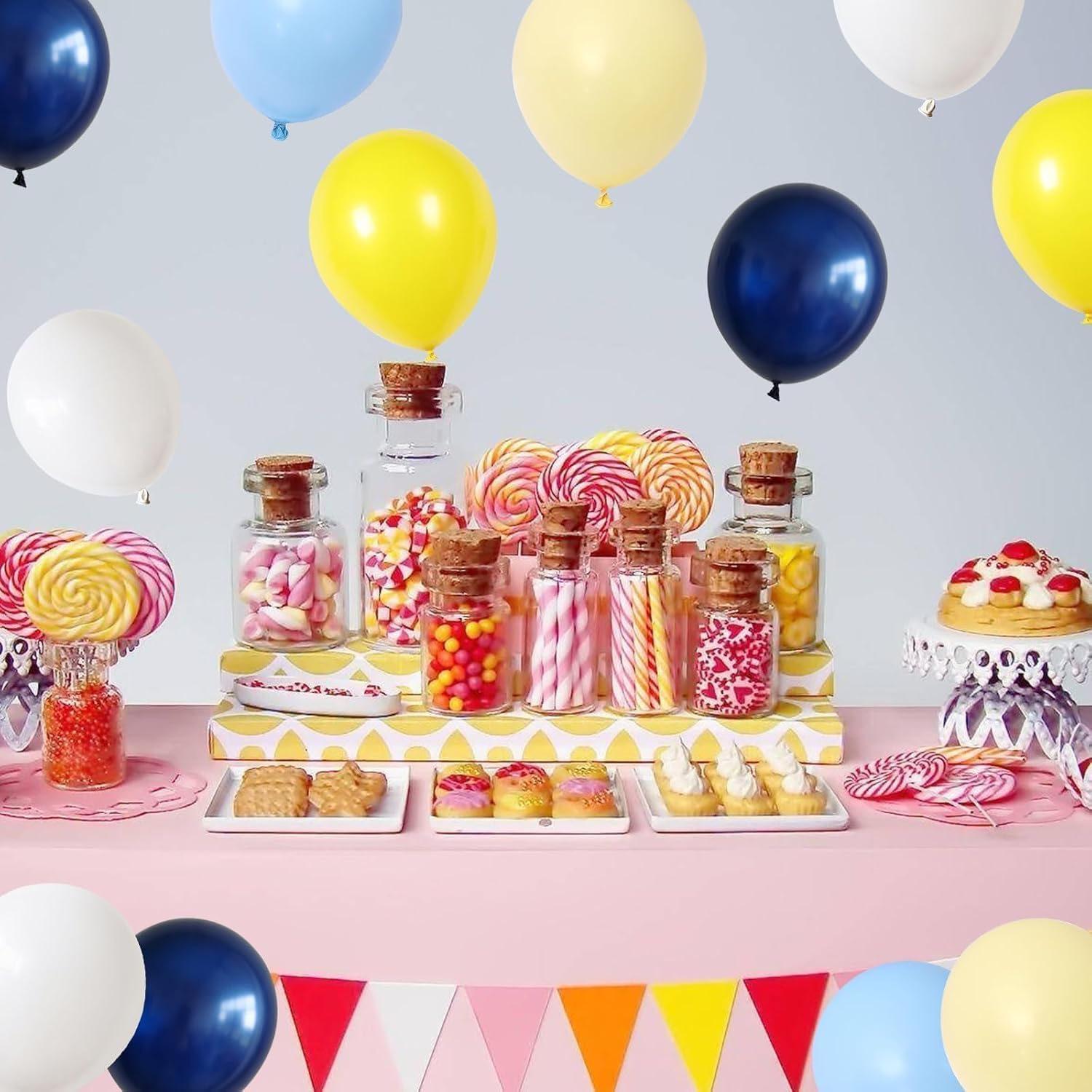 Blue Yellow Balloons Set, 60PCS Navy Blue Matte Yellow White Party Balloons, Pastel Blues Yellows and White Latex Helium Balloon for Boys Birthday Baby Shower Graduation Truck Office Party Decorations