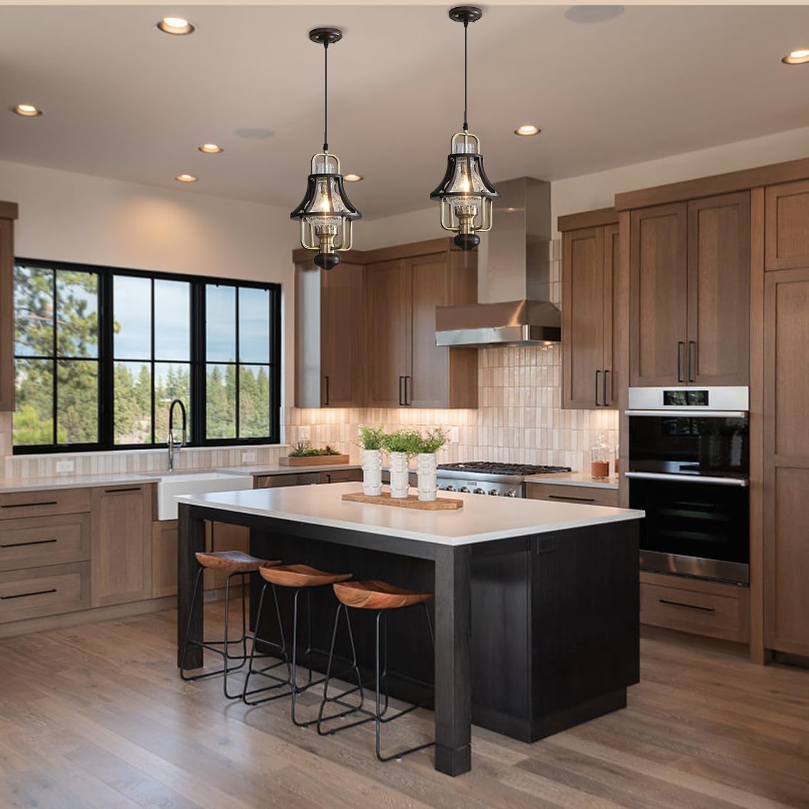 • 💚Why choose us?【RETRO & CLASSIC】 - Industrial age inspired design, this pendant light with fractured glass shade enclosed by matte black and antique cage, fits in vintage and farmhouse home interior, adding a touch of steam punk to your space.