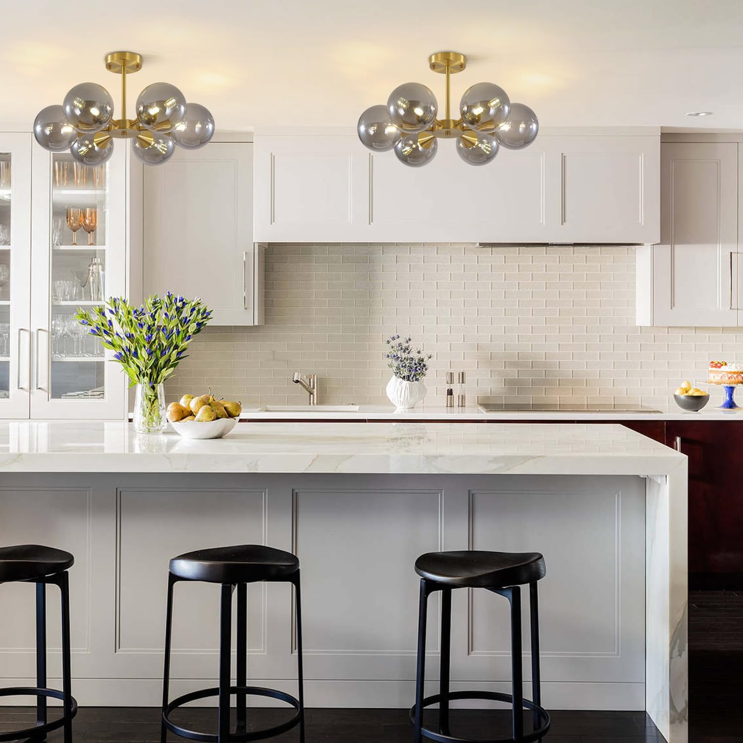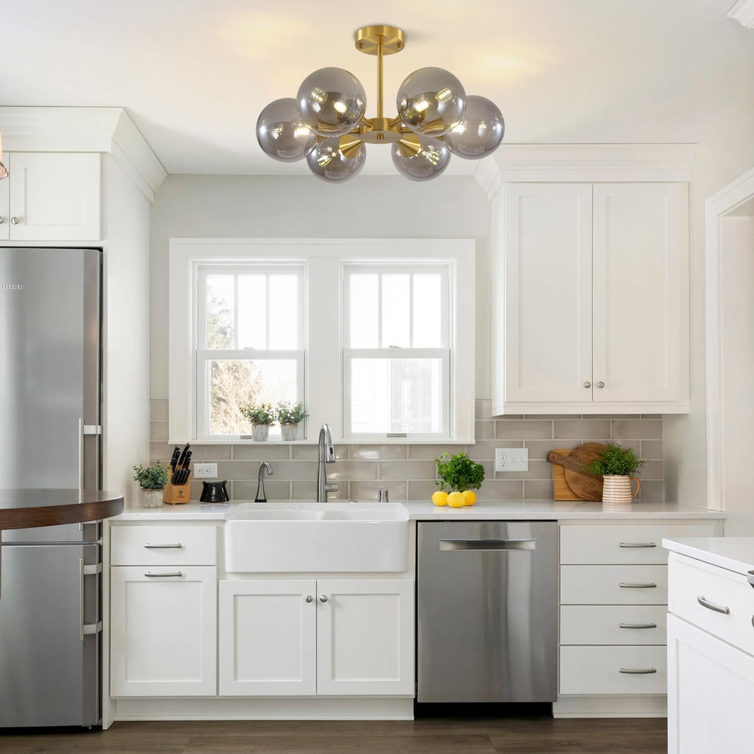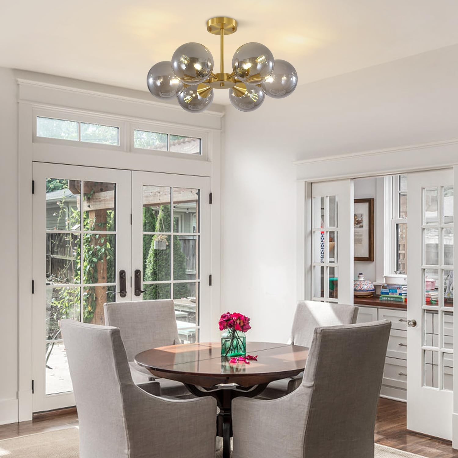 • Perfect for Low Ceilings & Easy Installation: 6-lights glass globe sputnik chandelier ceiling light removing the cumbersome design, semi flush mount can be easily embedded on most occasions, perfect fit with any ceilings, from high ceilings to low ceilings. The installation is super easy, just loosen the lock ring and finish lamp body installation, then rotate the glass globe to finish the lampshade installation