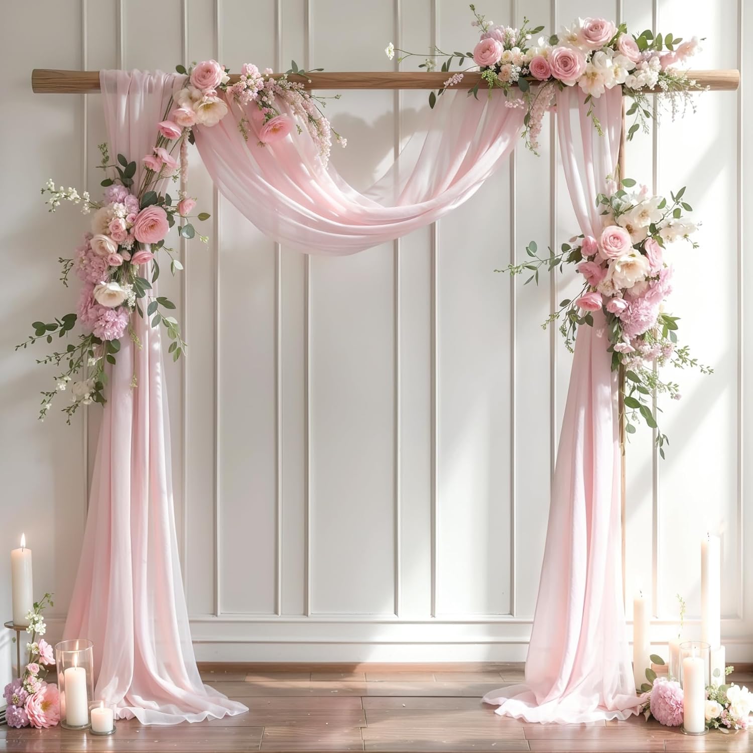 • Best Choice Wedding Arch: Blush arch drapes are good choice for your wedding decor. Romantic arch fabric will help to create beautiful folds or leave it flowing loose onto the floor, adding a very delicate, soft touch. Best wedding decoration gift.