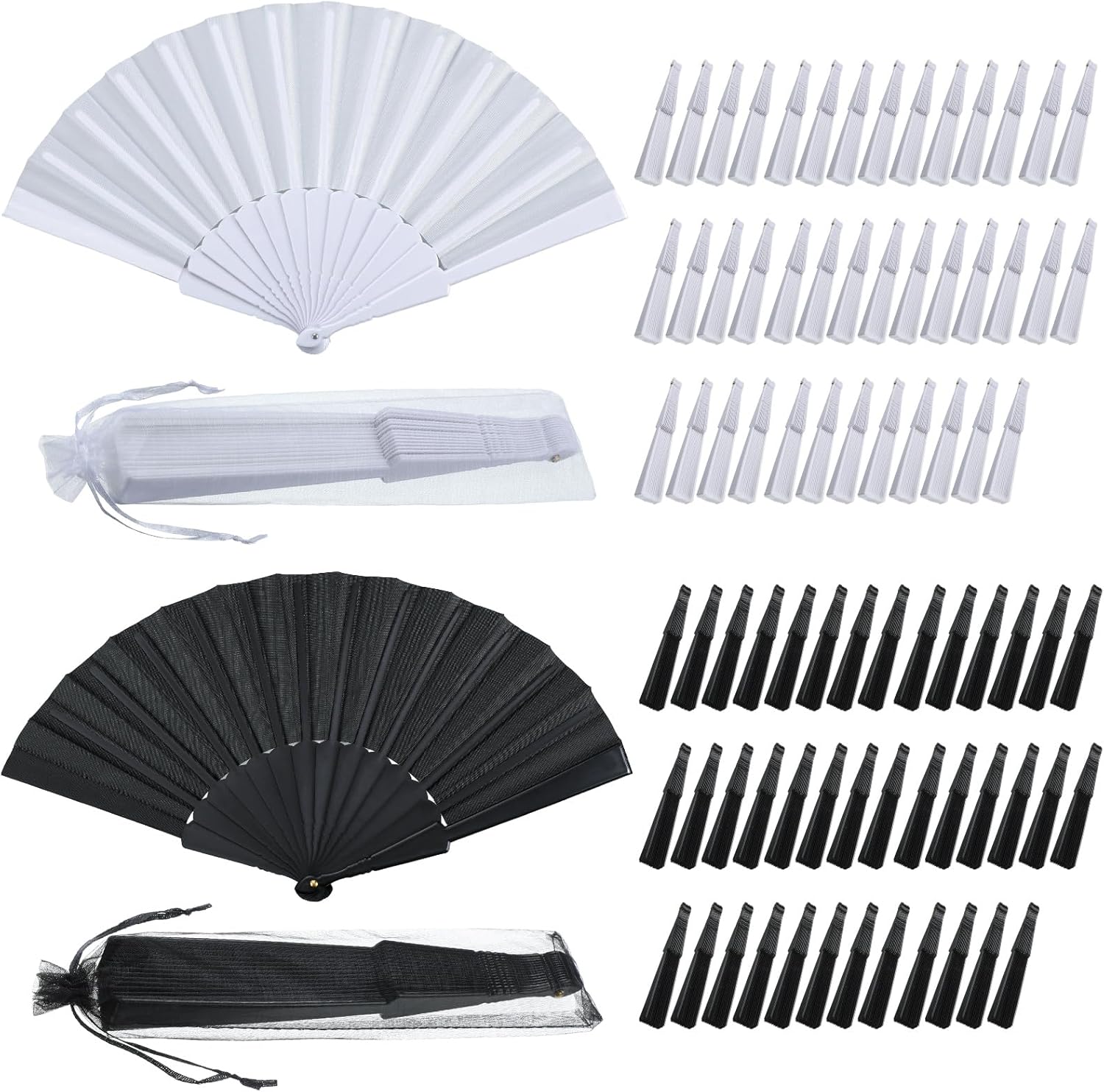 • Package Includes: you will receive 80 pcs wedding folding hand fans, 40 pcs each in white and black, 80 pcs transparent mesh bags, 40 pcs each in white and black, the quantity is sufficient to meet your various needs