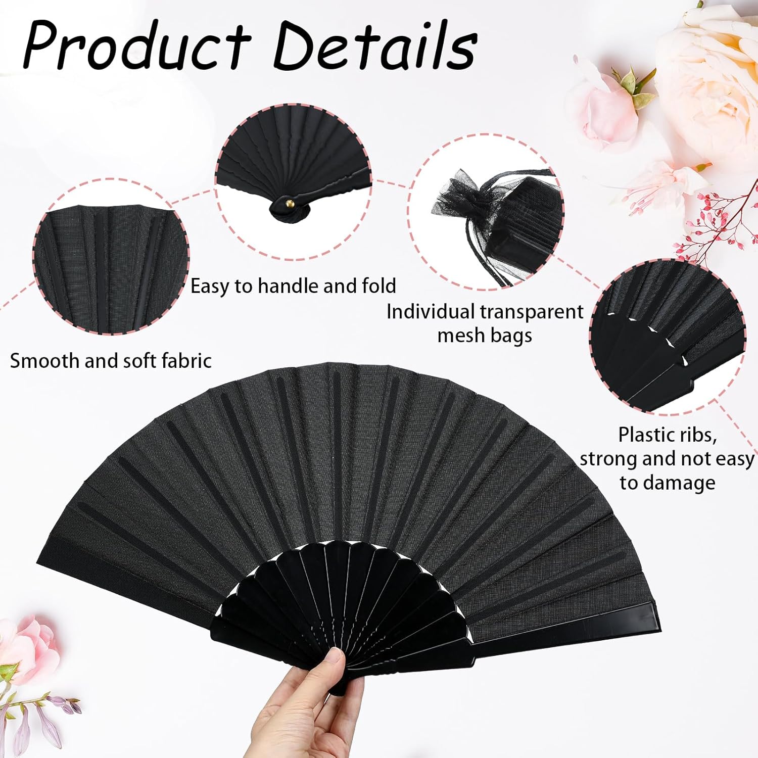 • Made of Quality Material: these handheld folding fans are made of reliable plastic and quality black fabric material, not easy to damage, easy to open and close, makes the folding fan lighter and more durable