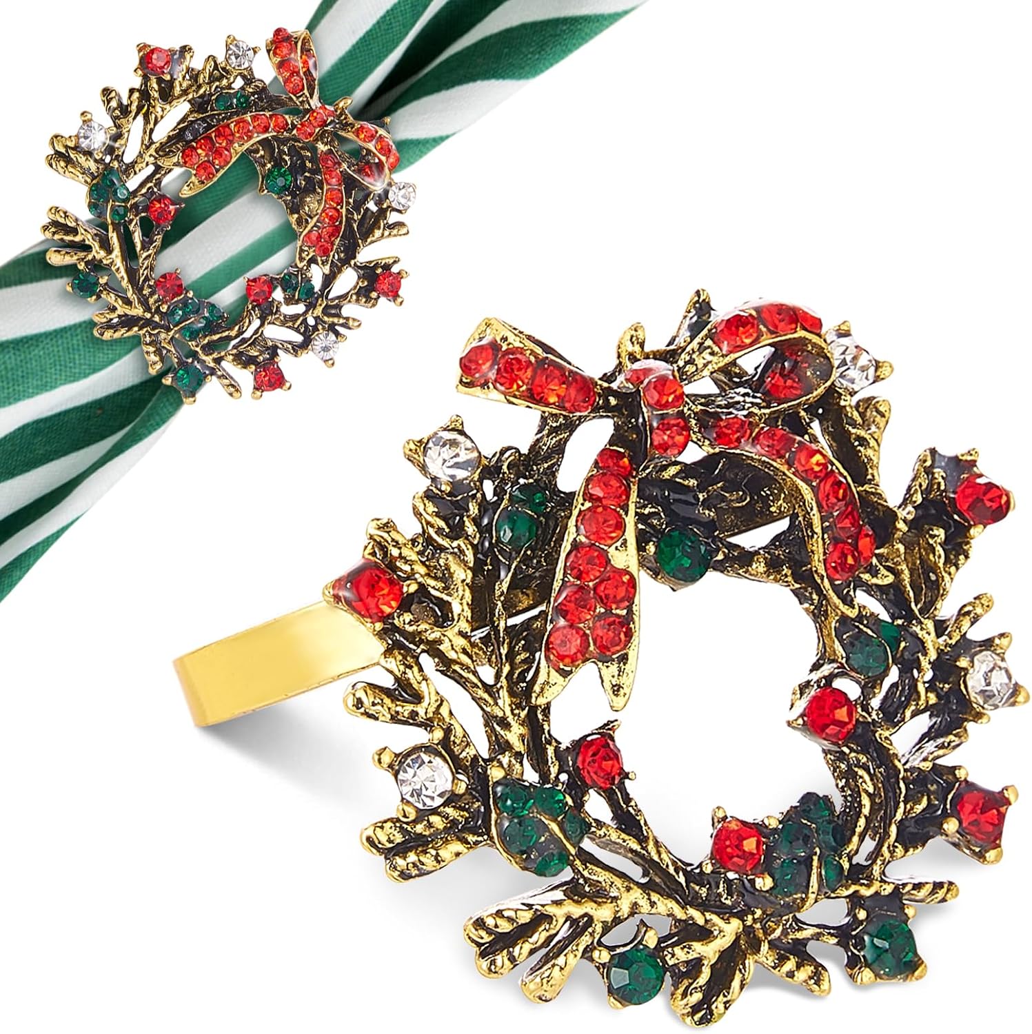 • 6PCS Delicate Xmas Napkin Rings: You will recieved set of 6 stunning rhinestone-studded wreath napkin rings, which are gorgeous and can make your Christmas table, wedding reception, Valentine's party and daily dinner beautiful and classy.