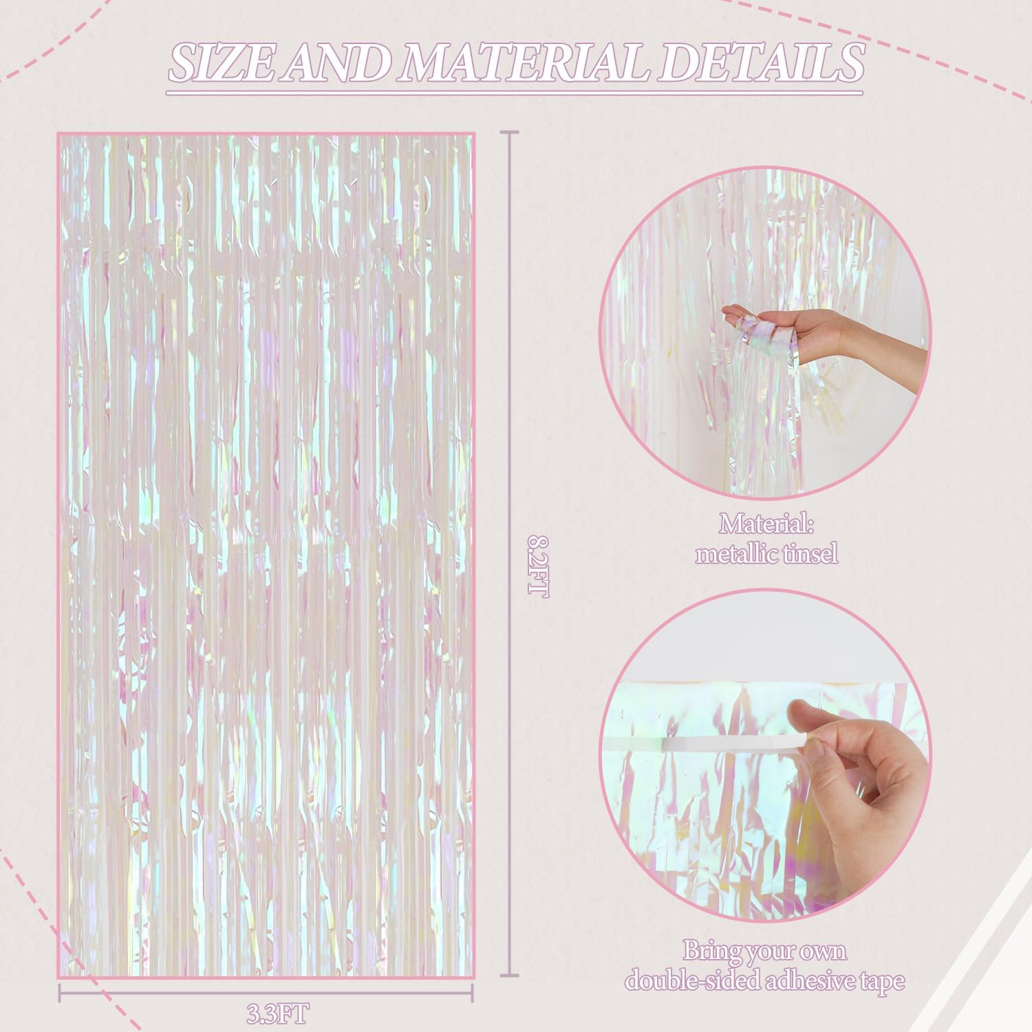 • 【Package Included】Tinsel Curtain 3 Pack, each foil fringe backdrop size 3.3ft x 8.2ft. It's long enough to fit any decorate occasion.