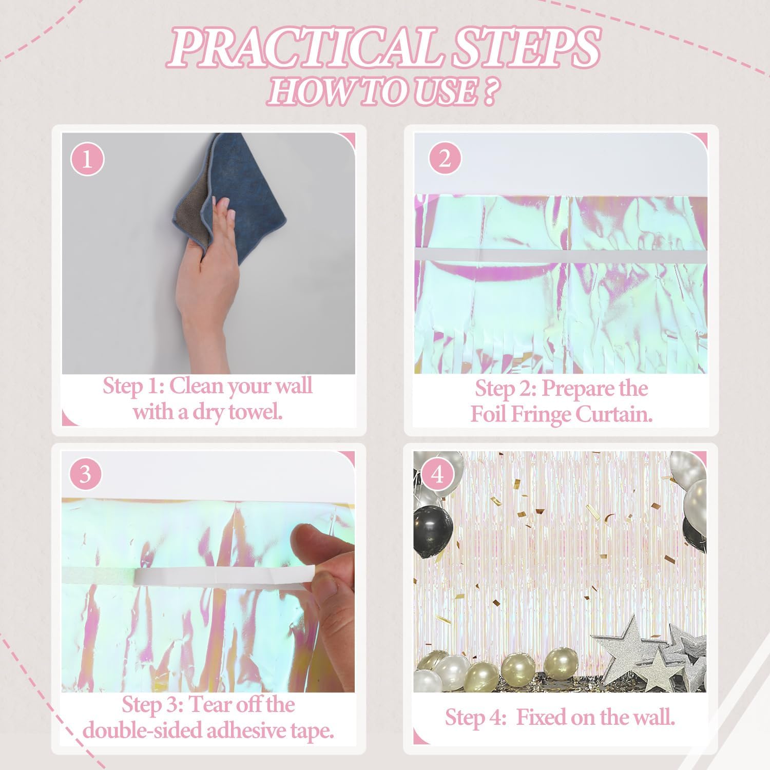 • 【Widely Applications】These foil curtain backdrops are perfect for Birthday, Christmas, Halloween, Theme Party, Engagement Party, Anniversary, Homecoming, Bridal shower, Bachelorette Party, Baby shower, Graduation, Wedding, Masquerade, Disco, etc.