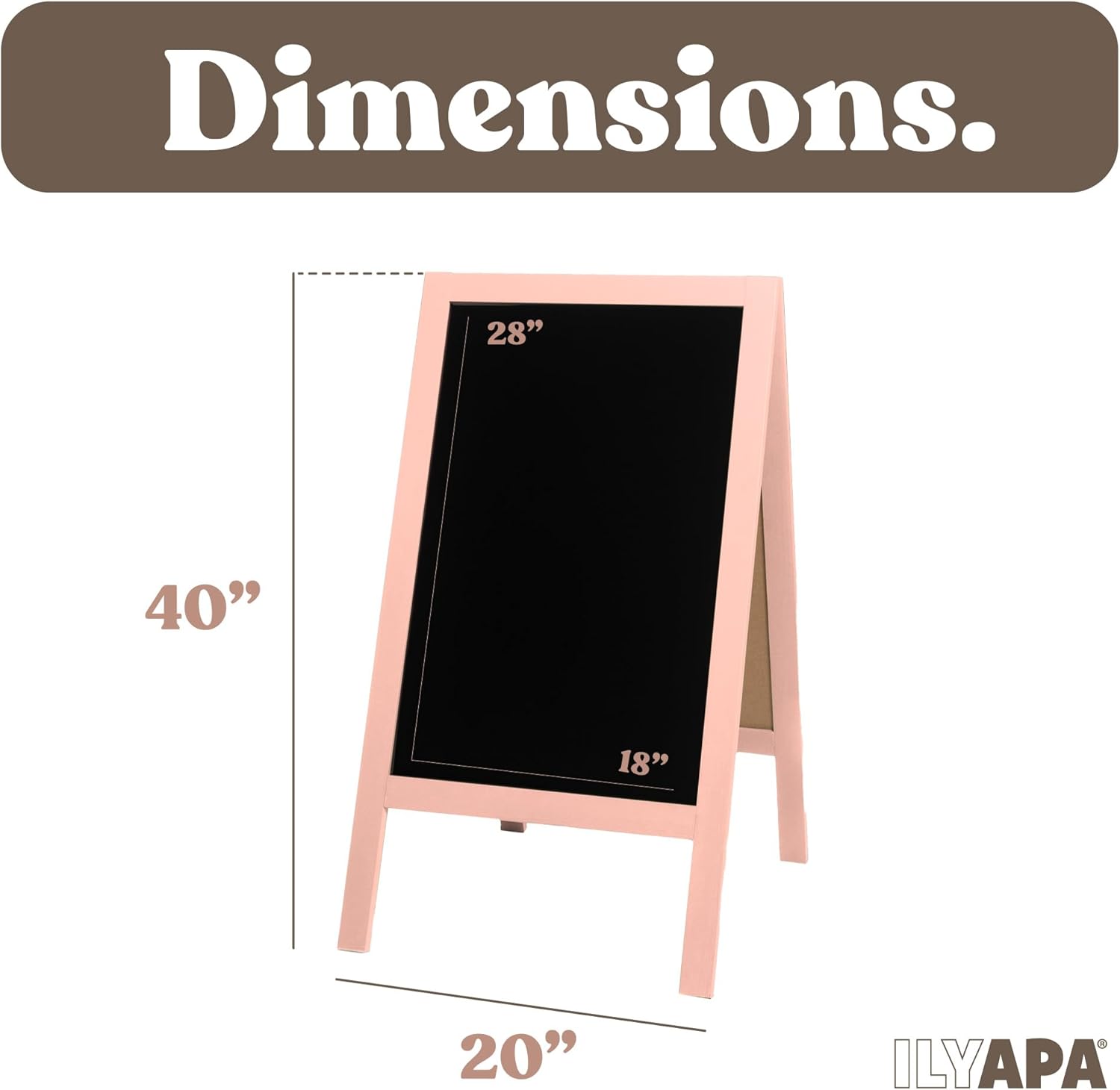 Ilyapa Wooden A-Frame Sign with Eraser & Chalk - 40 x 20 Inches Magnetic Sidewalk Chalkboard – Pink Menu Display for Restaurant, Business Or Wedding