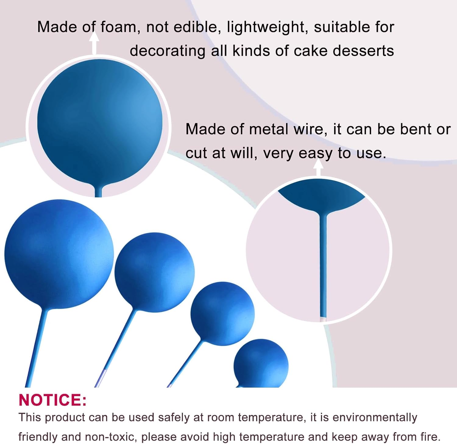 ASTARON 20 Pcs Ball Cake Topper Decorations Mini Balloons Cake Topper Sticks Royal Blue Balls Cake Picks for Graduation Wedding Birthday Cake Decorations