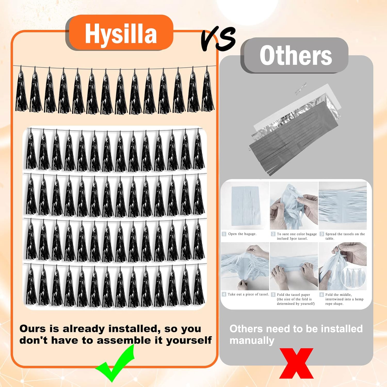 • 【Applicable Occasions】you can use the black tinsel fringe garlands to decorate a classroom, the stage for a school program, a homecoming float, a wedding decoration, a birthday party, a baby shower, Halloween, Christmas, new year's Eve, a housewarming party, a bachelorette party, an anniversary Memorial, Hollywood Party, Independence Day, Carnival Party, Bridal Shower, Graduation and more.