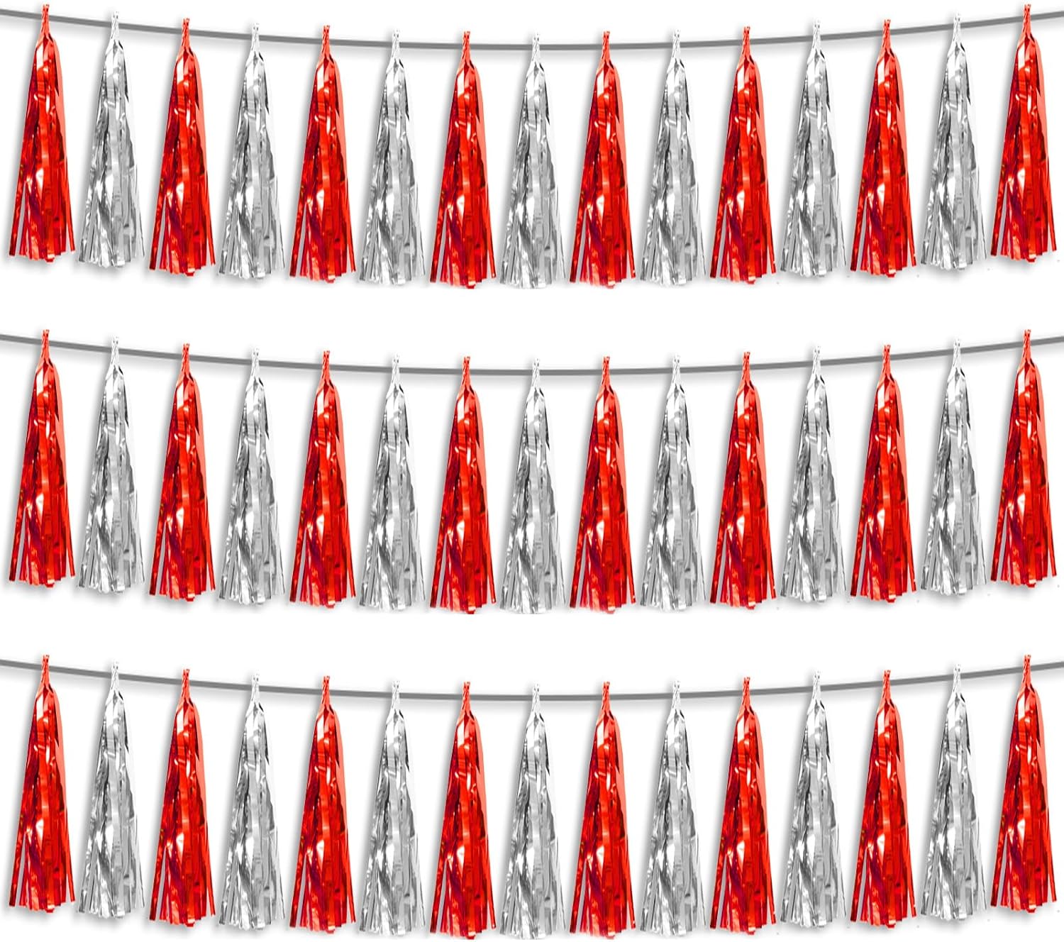 3P Red Silver Foil Fringe Metallic Tassel Streamers Banner Tassel Garland for Parade Floats, Bachelorette, Wedding, Birthday, Halloween, Christmas, Bridal/Baby Shower Party Decorations