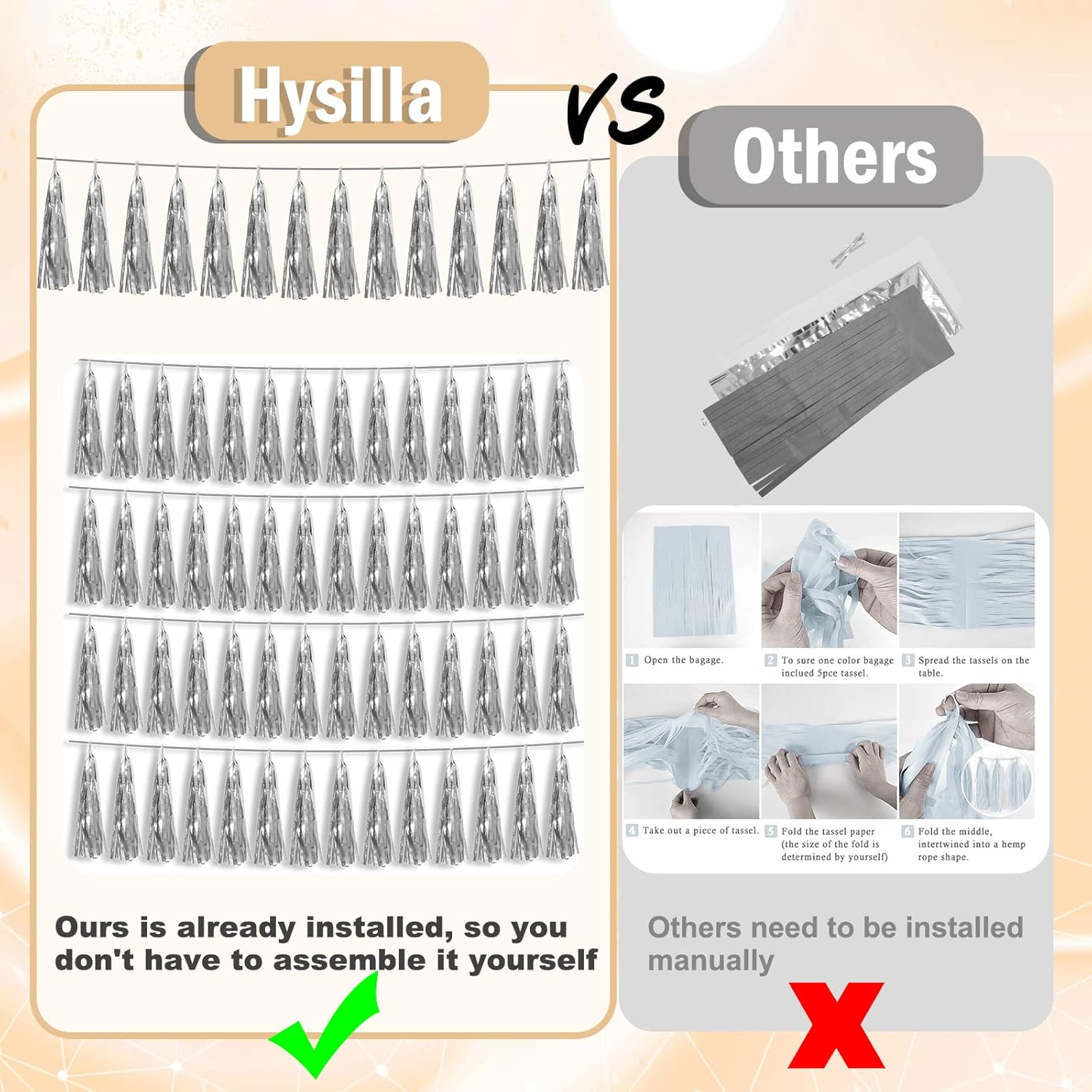 • 【Silver Party Supplies Set】: The total length of the silver birthday tassels banner is 29.5 feet 45tassels, divided into 3 strips, each 9.8 feet long. Each banner contains 15 tassels, and each tassel measures 14 inches, for birthday decorations many occasions, and so on