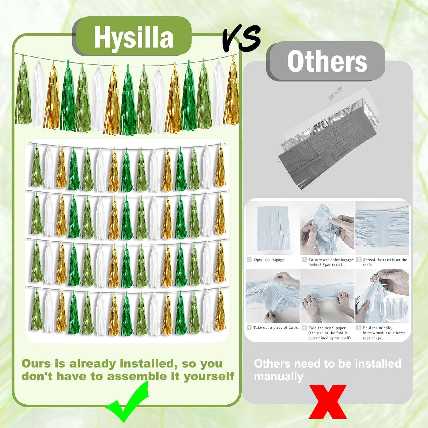 • 【Light Green White Gold Green Party Supplies Set】: The total length of the Light Green White Gold Green birthday tassels banner is 78.7 feet 120tassels, divided into 8 strips, each 9.8 feet long. Each banner contains 15 tassels, and each tassel measures 14 inches, for birthday decorations many occasions, and so on