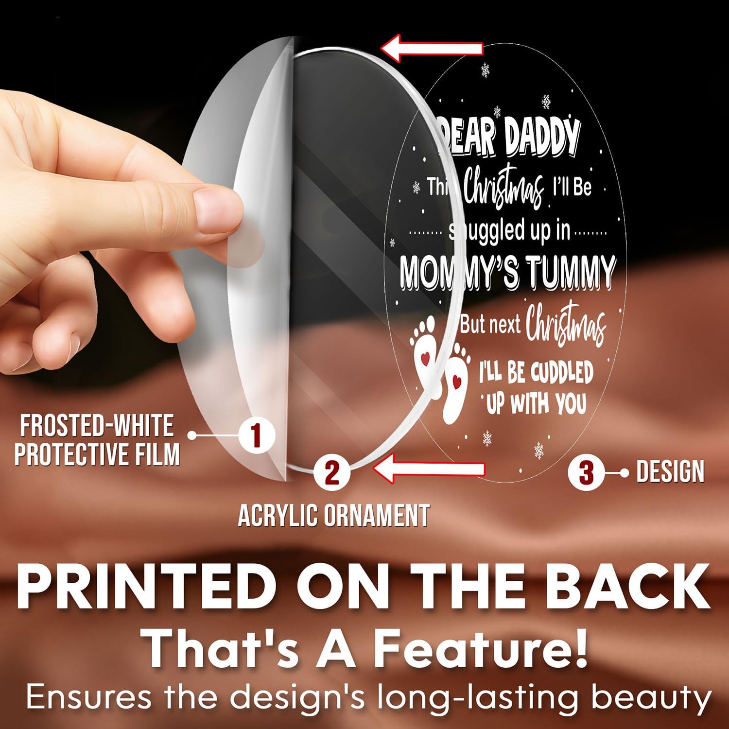 • NEW DAD GIFTS FIRST TIME - Get ready for fatherhood with these delightful and useful gifts for new dads. Each ornament features a playful message from their future child, helping them prepare for the exciting day when baby arrives! Suitable for new dad gifts, first time dad gifts, dad to be gifts, daddy to be, soon to be dad gifts, expecting dad gifts, pregnancy gifts for expecting dad