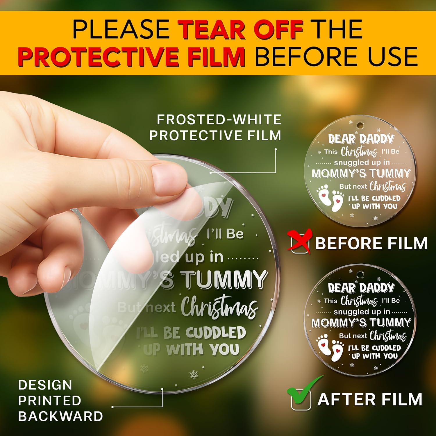 • ACRYLIC MATERIAL: Made from acrylic with a transparent protective film on the front to prevent scratches. The design is printed on the back, and to fully appreciate the ornament's beauty, remove the protective film to reveal the clear acrylic finish