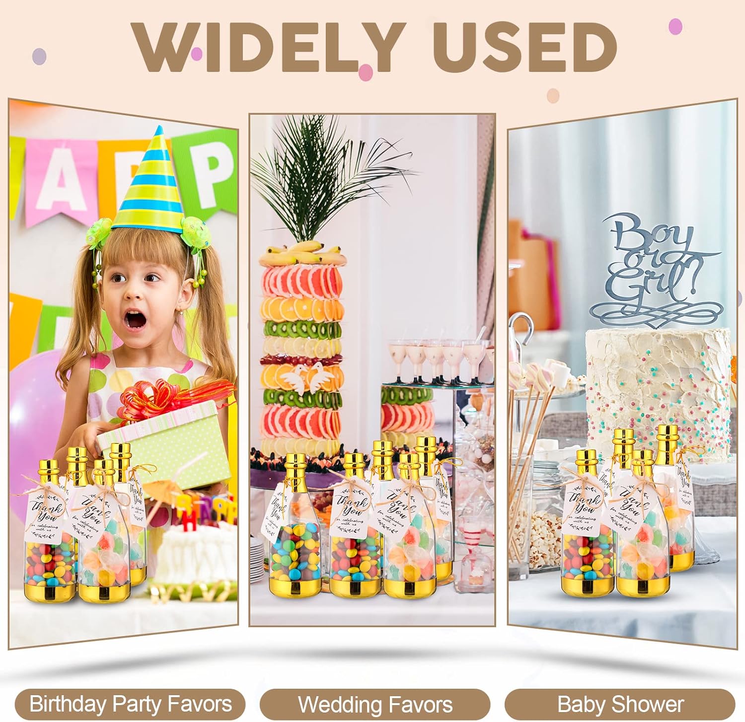 • Variety of Occasions: these clear plastic party favor containers will become exquisite souvenirs for your guests after parties, and you can use these mini champagne bottles to store different kinds of candies for your guests to enjoy, which are nice for bridal shower, wedding, birthday, baby shower and more meaningful activities