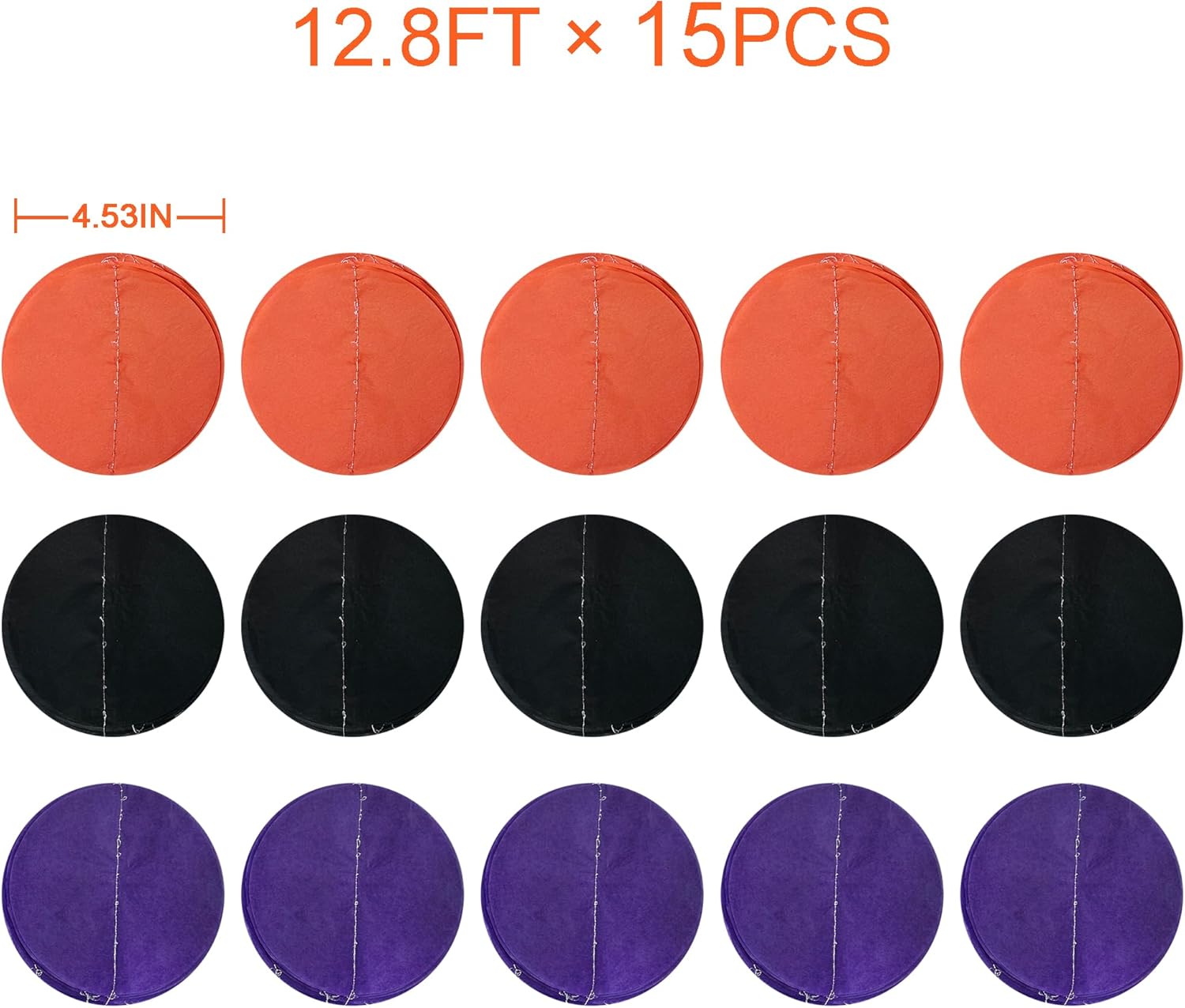 • ๐ŸŸฃPACKAGE CONTAINS- 15 packs of orange black purple circle dot party streamer banner,each string is 12.8 feet/3.9 meters with 30 pcs polka dots, Total is 58.5 meters/192 feet.