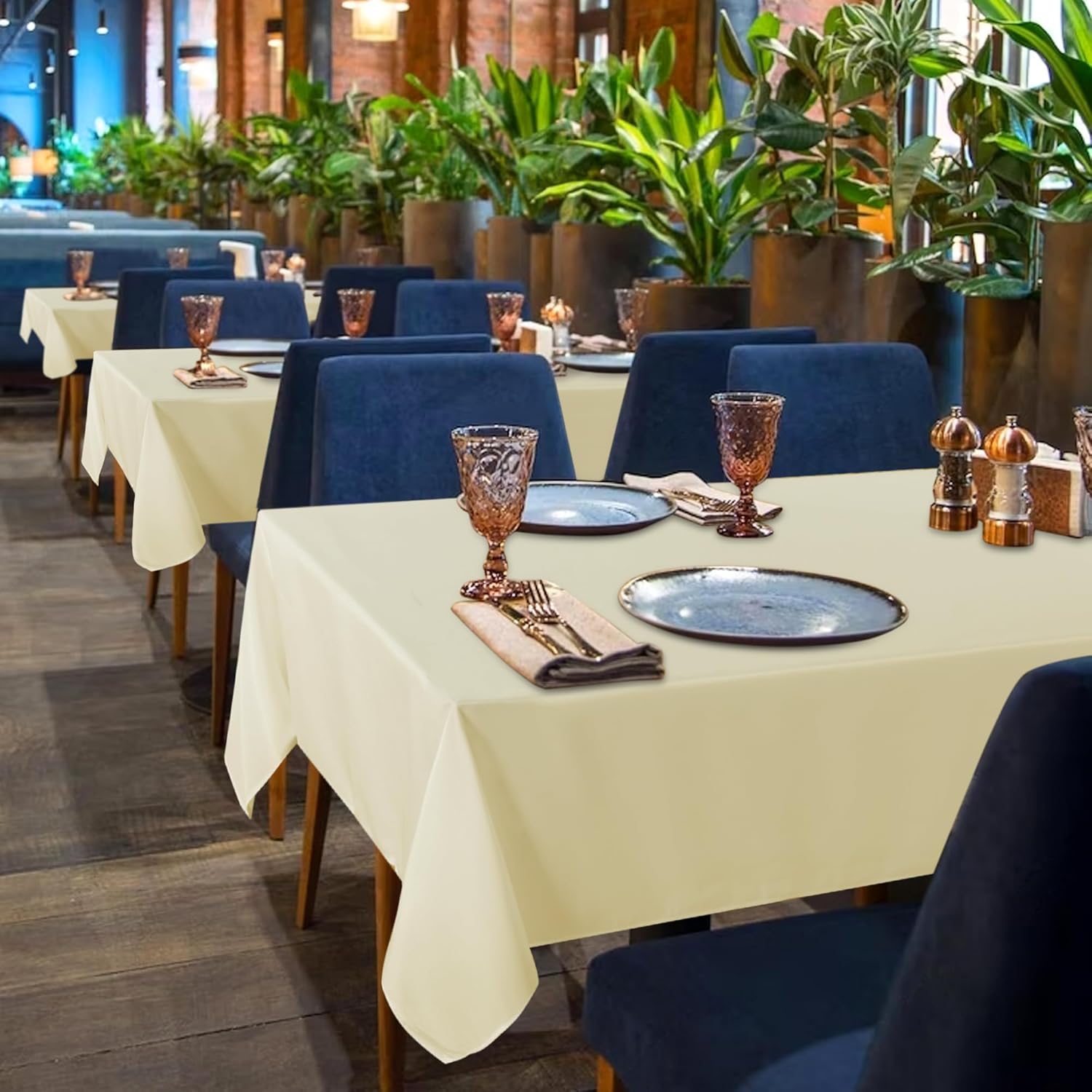 • MEASUREMENTS: This beige table cloth is 60 inch wide and 120 inch long, perfect for standard 8ft table, providing 12 inch drop.
