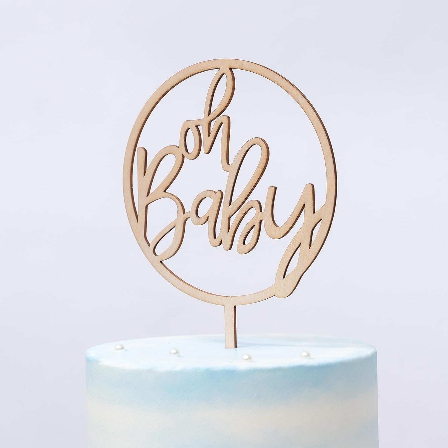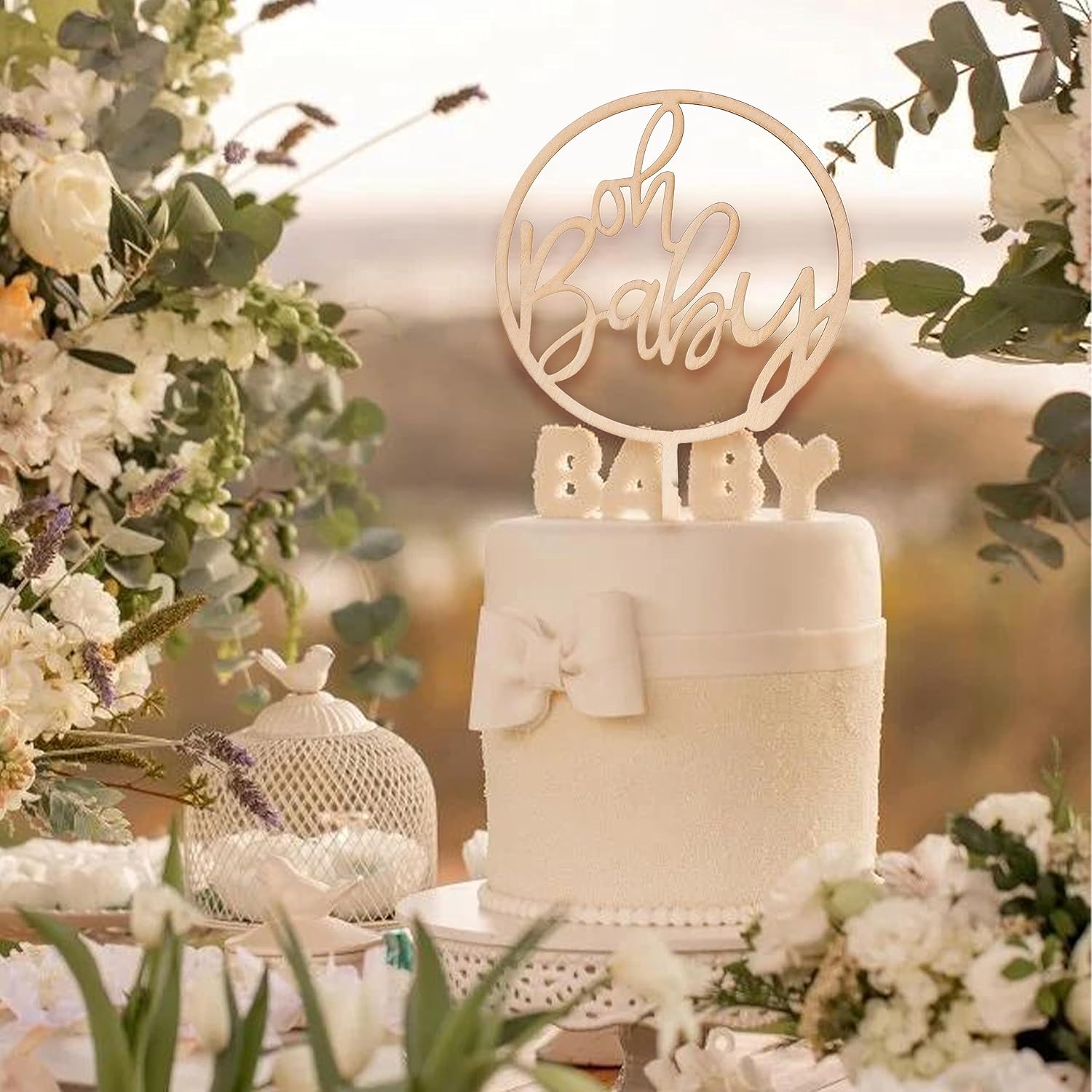 Oh Baby Wooden Cake Topper - Baby Shower Decoration,Gender Reveal Cake Doceration Supplies,Newtral Baby Shower Photo Props