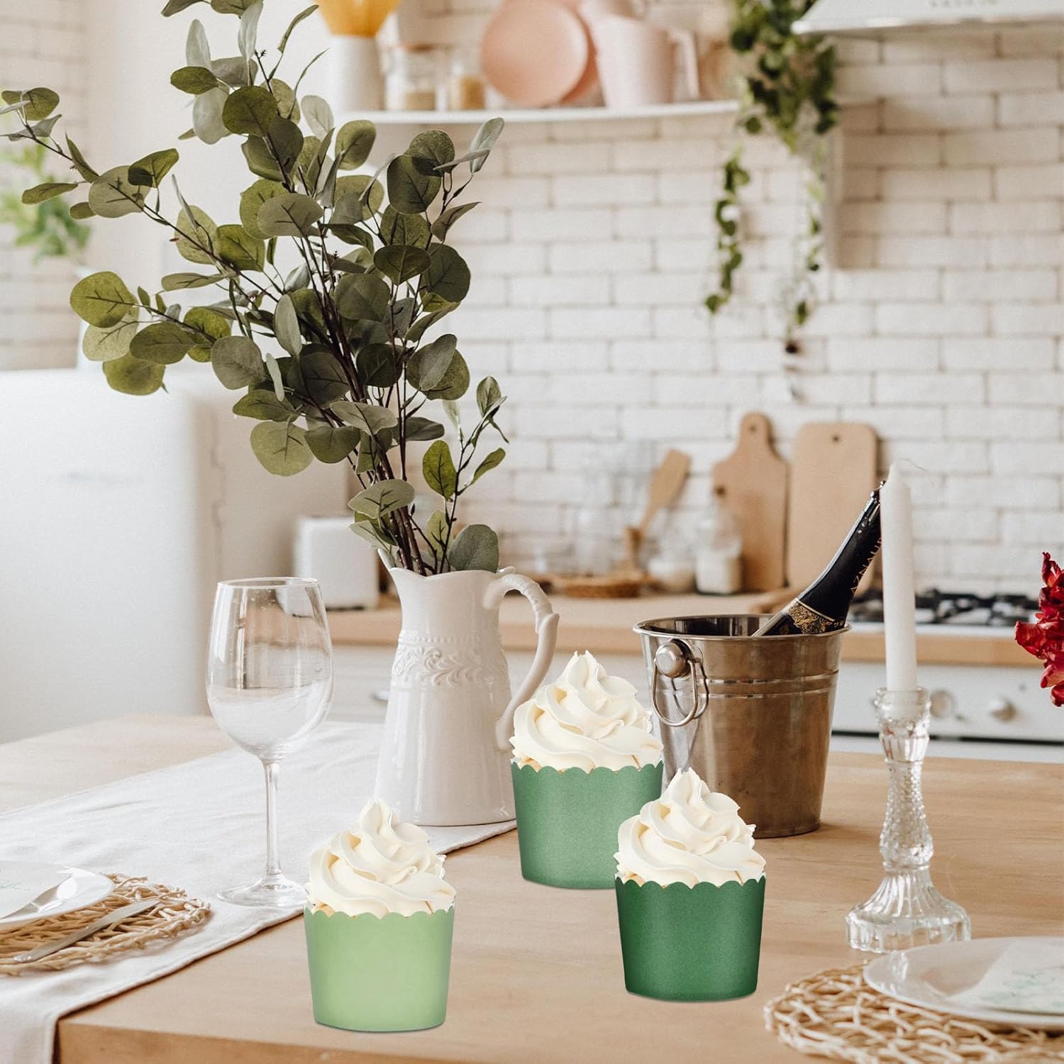• Sage Green Theme - Our paper baking cups have sage green theme colors, 3 gradient green colors, from light to dark, fresh and delicate, add a exquisite touch to your tabletop or party.